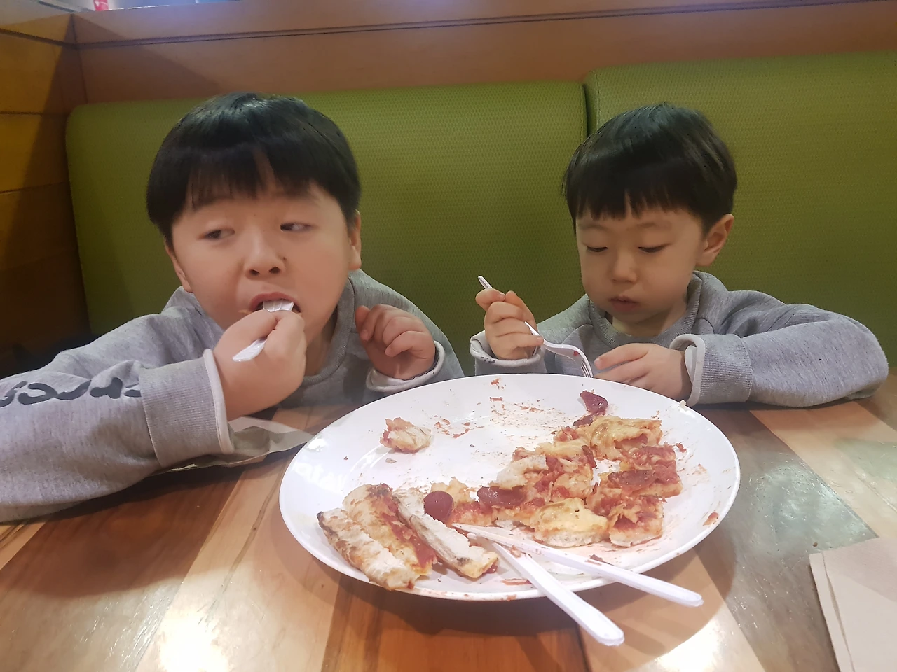 잠시 쉬다 배가 고파졌는지 밥 먹자고 난리인 아이들. 아직 한창 낮인데 캐나다까지 와서 아이들과 숙소에 있을 수는 없지 않나! 멀지 않은 곳에 쇼핑몰이 있다고 하니 우버를 불러 가보기로 했다. 캐나다에서는 길을 몰라도 친절한 우버가 미리 지정한 예약 장소로 데려다 주니 아이들을 데리고 이동하기 너무 편했다. 큰 쇼핑몰을 구경하며 발견한 식당에서 피자를 사달라 성화인 아이들을 데리고 들어가 피자부터 시켰더니 둘이 달려들어 순식간에 먹어 치운다. 이렇게 배고픈데 어찌 참은 건지.