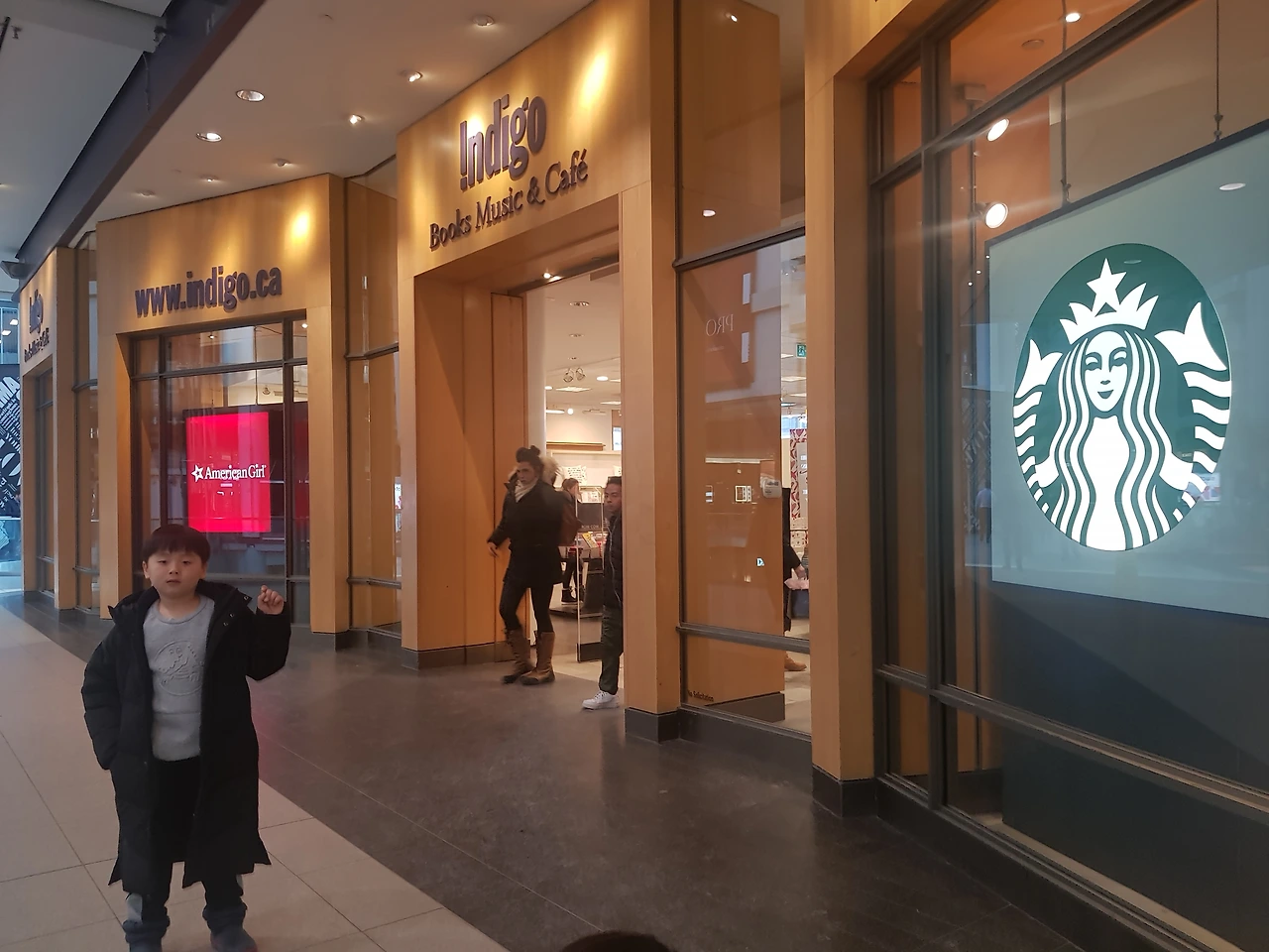 쇼핑몰이 생각보다 커서 옷부터 액세서리, 식당까지 다양하게 즐비해있어 아이들과 즐겁게 구경하다 우리 가족의 최애인 서점을 발견! 캐나다를 다니며 자주 갔던 서점으로 어디 가든 볼 수 있었던 ‘Indigo'였다. 넓고 다양한 책들이 예쁘게 진열되어 있는 데다 서점 한쪽에는 스타벅스까지! 완전 내 스타일이다. 그렇게 해서 우리 셋은 해가 저물 때까지 이곳을 떠나지 못했다고 한다.