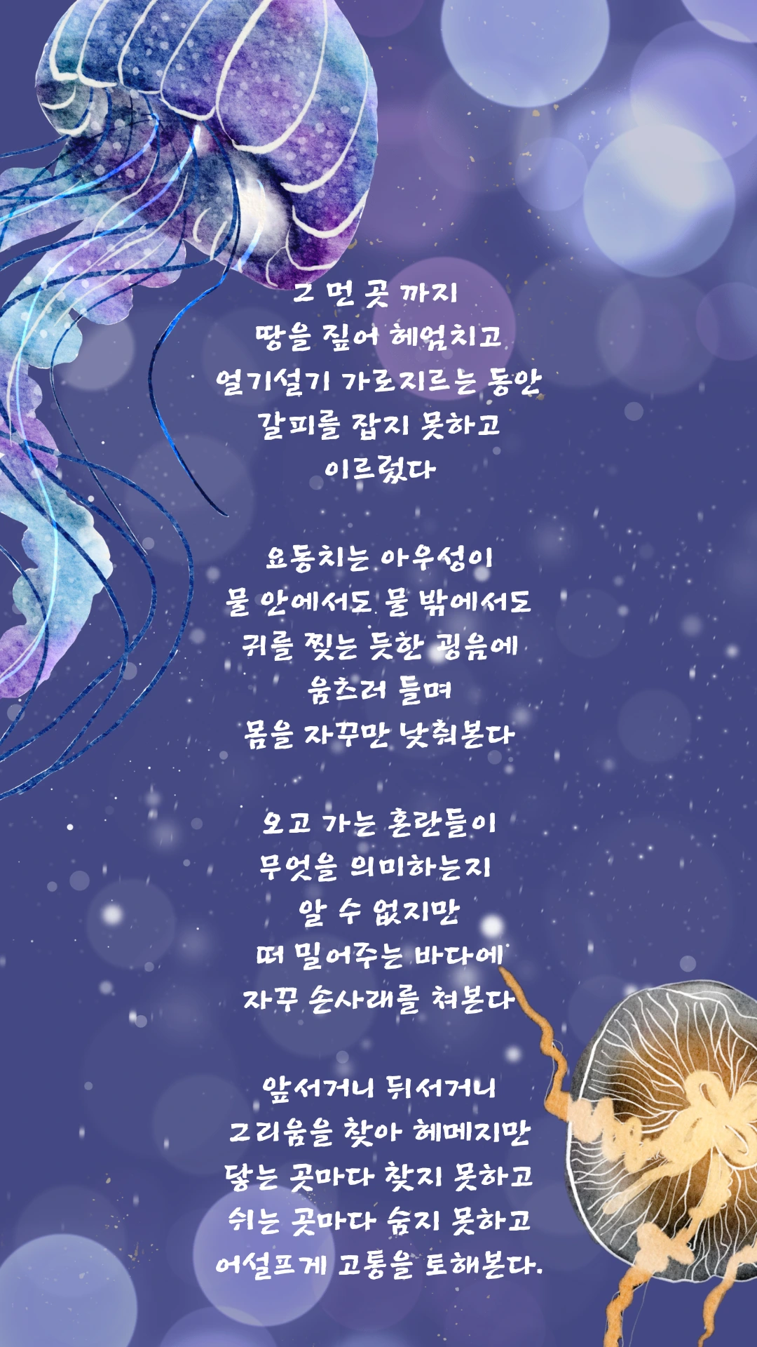 때로는 낯선 표현에 놀라기도 하고 과한 단어의 쓰임에 당황하기도 했지만 시라는 노래로 나의 마음과 생각을 표현할 수 있다는 기쁨에 스스로 취해보기도 했어요. 그렇게 자신감을 가져보려 했지만 시를 계속 쓰며 누군가에게 울림이 되고 감동을 전하는 시를 쓰는 일이 얼마나 힘든지 절실히 깨닫는 순간이었습니다.