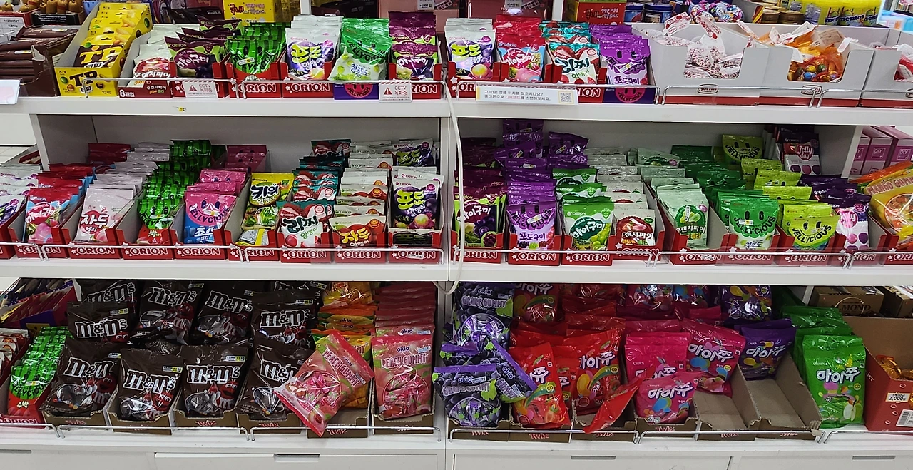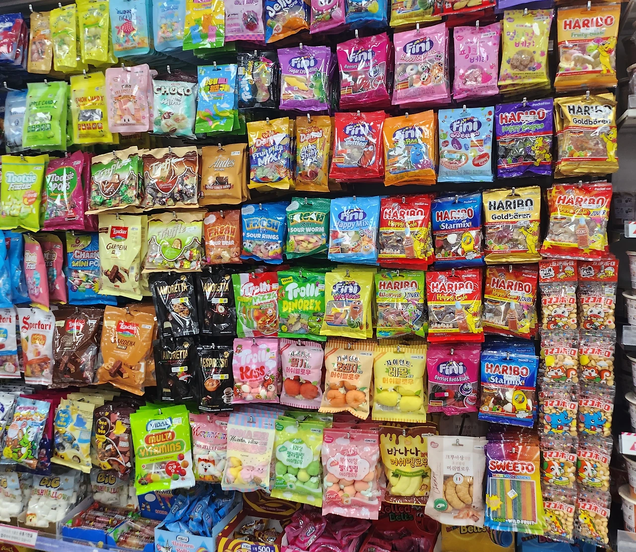 대학생이 되고 친구들과 춤추러 다닐 때 유행처럼 입에 늘 넣고 다니던 막대사탕의 대표주자 츄파춥스, 캐러멜 계의 (주관적) 쌍두마차 새콤달콤 vs 마이쮸, 종류도 다양한 독일 출신 하리보 젤리, 아이들이 즐겨 먹던 왕 꿈틀이 등 맛있는 달달이 간식이 다양하게 구비되어 한눈에 들어오고 다른 마트보다 상대적으로 저렴한 다이소 간식 코너를 많이 아끼고 사랑한다.