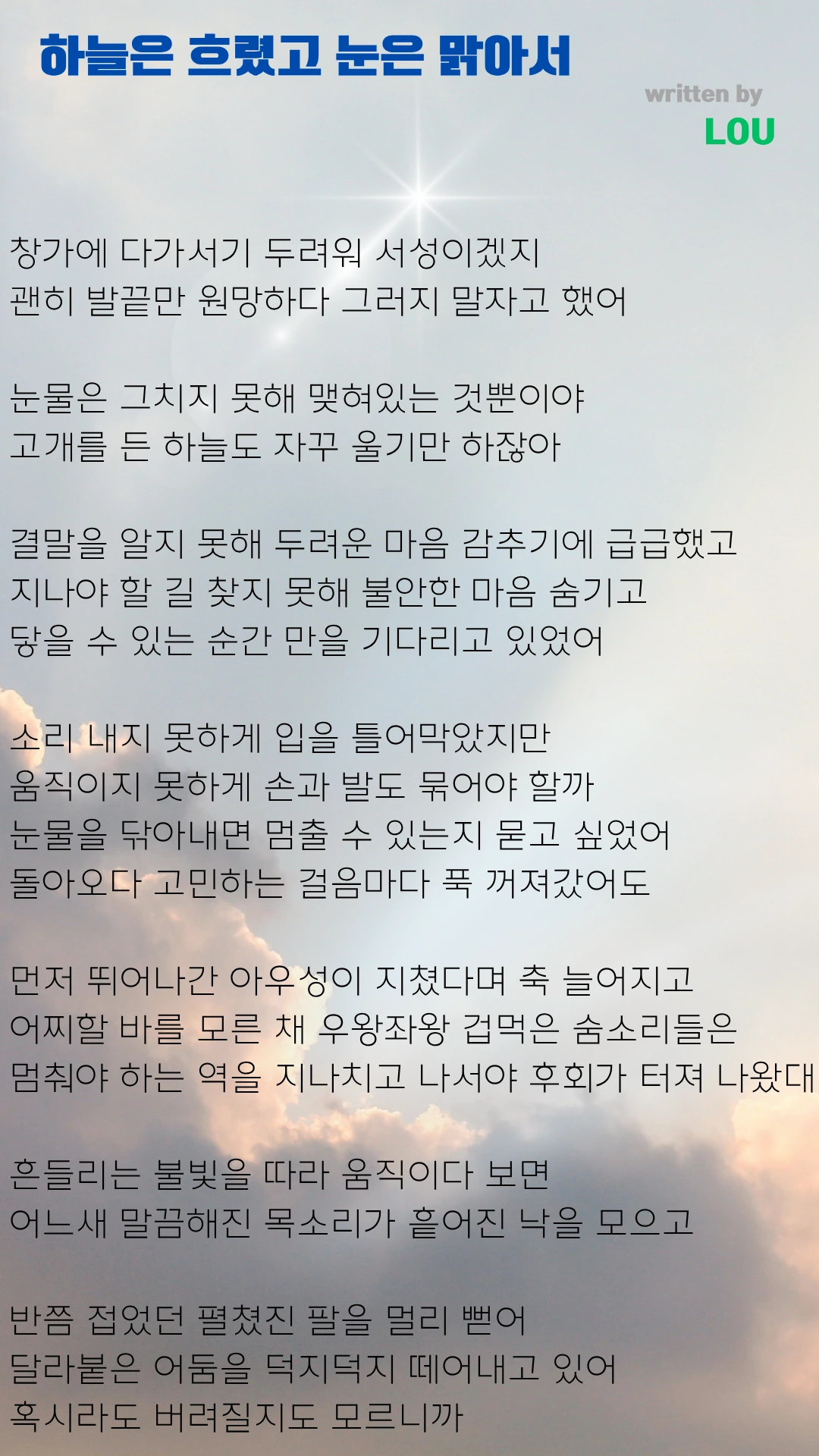 길고 긴 비와 바람이 가져온 깊어가는 가을 하늘 속에 깃든 기억들을 연휴의 끝과 현실의 시작에서 살포시 내려놓아 봅니다.