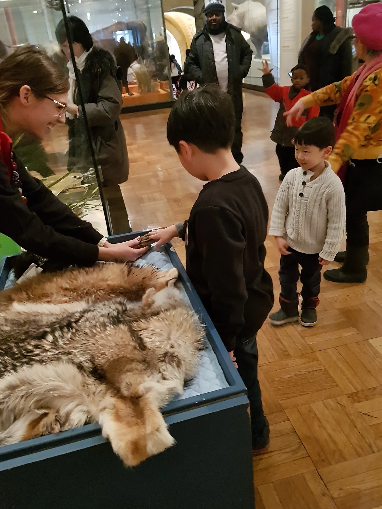 전시장에 들어서자 더 분주해진 아이들. 설명도해야 되지 엄마도 불러야 되지 바쁘다 바빠! 전시관 한쪽에 마련된 체험 코너에서 여러 동물의 털들을 내어놓고 아이들이 만지는 체험이 보였다. 도우미 선생님들이 친절히 설명해 주며 체험을 도와주었는데 호기심 많은 큰 아이는 덥석 달려들어 신이 나게 만져보고 감탄사를 내뱉는 동안 겁 많은 둘째는 멀찍이 서서 형이 만지는 모습만 유심히 바라보고 신기한지 빙그레 웃는다.
