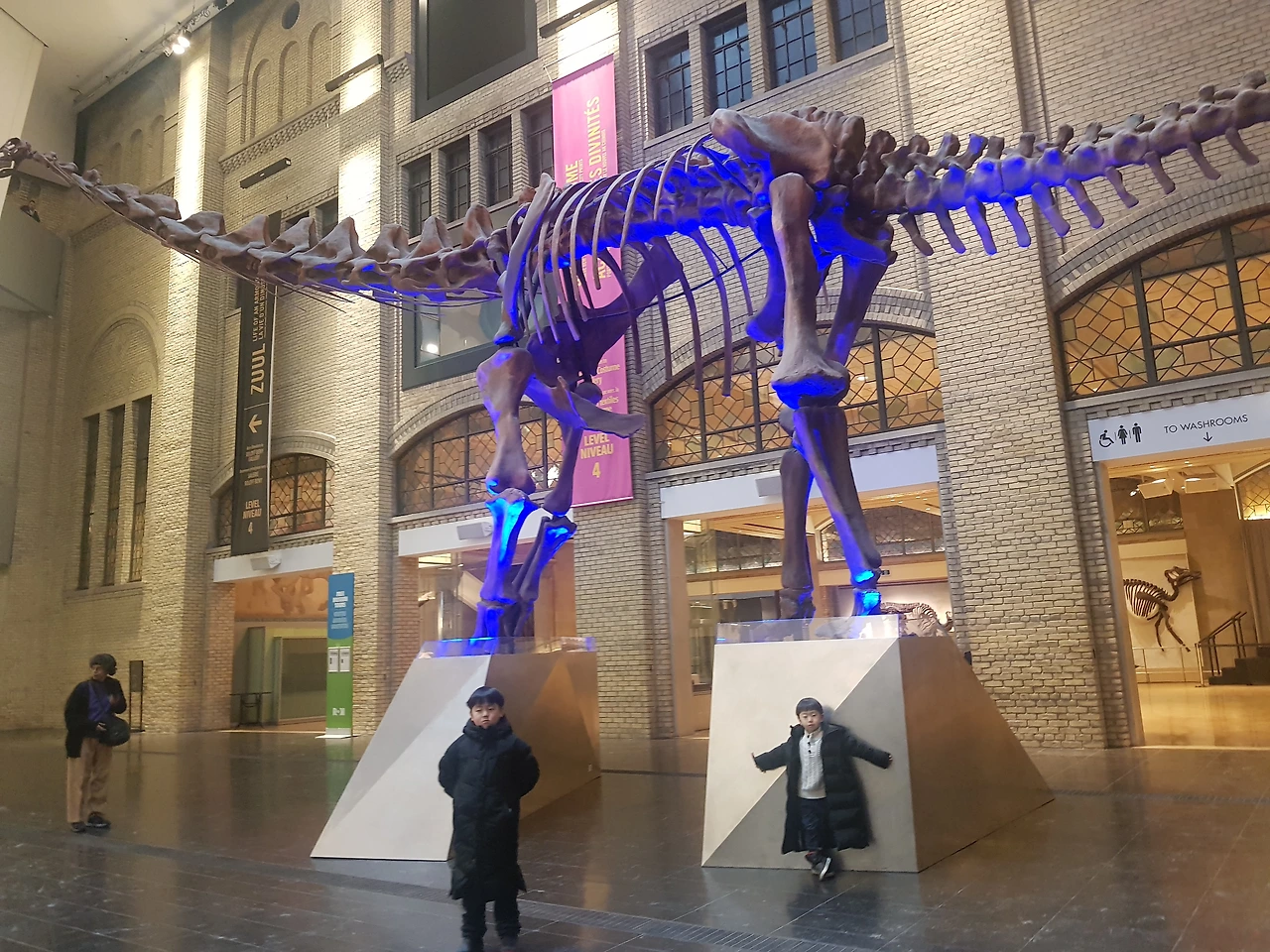 박물관 안으로 들어서면 외부의 규모만큼이나 크고 널찍한 로비를 만날 수 있는데 그곳에 전시된 어마어마한 공룡의 뼈를 보자 당시에는 공룡마니아였던 둘째가 신이 나서 소리친다 “우와 엄마 진짜 큰 공룡이다 이 공룡이 머냐면~“ 설명이 길어지니 살짝 피곤해지려 한다. 긴 설명이 끝나고 다시 엄마를 외쳐 부르는 막둥이 ”엄마 이 공룡 너무 멋지지! 얼른 사진 찍어줘! “
