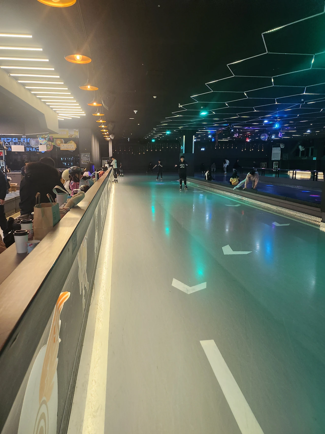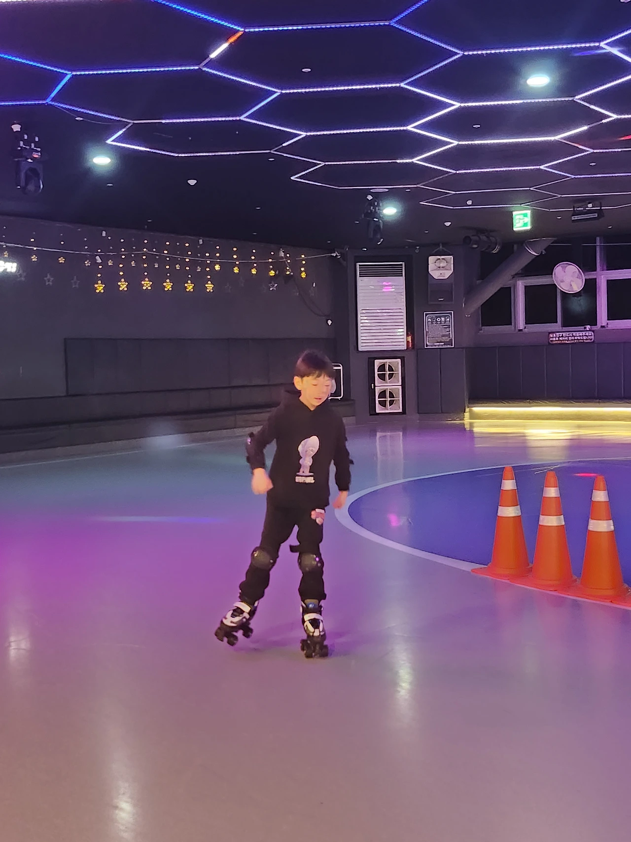 특히 겨울방학에는 아이들 운동량이 확연이 줄어든다. 자주는 아니어도 가끔이라도 시간을 내서 운동이 되는 뭐라도 해주고 싶지만 생각보다 쉽지 않다. 집에서 멀지 않은 곳에 있는 롤러장은 저렴한 가격에 2시간 30분을 놀 수 있는데 롤러와 헬멧, 보호장비 등이 사용로에 포함되어 있어 모두 이용 가능하다. 엄마는 음료 한 잔을 마시며 쉴 수 있으니 일석이조가 아닌가! 신나는 최신 아이돌 음악과 뮤직 비디오가 끊임없이 흘러나와 조금 타다 힘들면 의자에 앉아 편히 쉬면서 구경도 할 수 있으니 즐겁게 놀 수 있는 장소임에 틀림없다. 오전 한 타임을 타면 점심시간이 되니 롤러를 타며 땀을 흘리고 맛있게 점심 먹고 학원을 보내면 뭔가 꽉 찬 하루를 보낸 느낌이 든다.