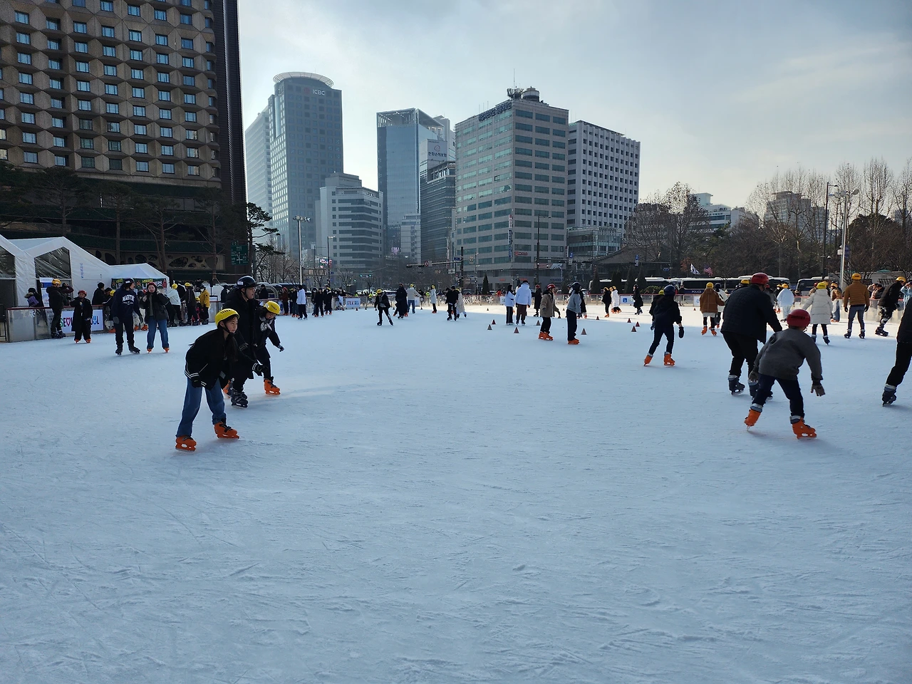 방학이 아니라도 좋은 이벤트나 행사는 신청해서 참여시키는데 진심인 엄마 아빠. 예전부터 아이들 데리고 서울광장 스케이트장 데려가서 스케이트 타게 해주고 싶다 노래하던 남편이 매번 뒤늦게 알아차려 예약마감에 좌절하곤 했는데 올해는 예약 시작 전에 정보를 알아 원하는 날짜와 시간에 예약을 마쳐 뿌듯해 마지않는 모습이다. 미리 알면 호들갑에 난리법석이기 때문에 아이들에게는 일단 비밀로 했다. 주말이면 여기저기 놀러 다니고 맛집도 찾는 게 일상이 되어버린 우리 가족이지만 아이들의 과제나 숙제가 남아있으면 도서관에 가기도 하고 양가에서 종종 부르시니 할아버지 할머니 뵈러 다니느라 주말들을 다 써버리다 보니 어느덧 큰 아이 생일이 지난 1월 말에서야 서울광장 스케이트장에 갈 수 있는 시간이 되었다.