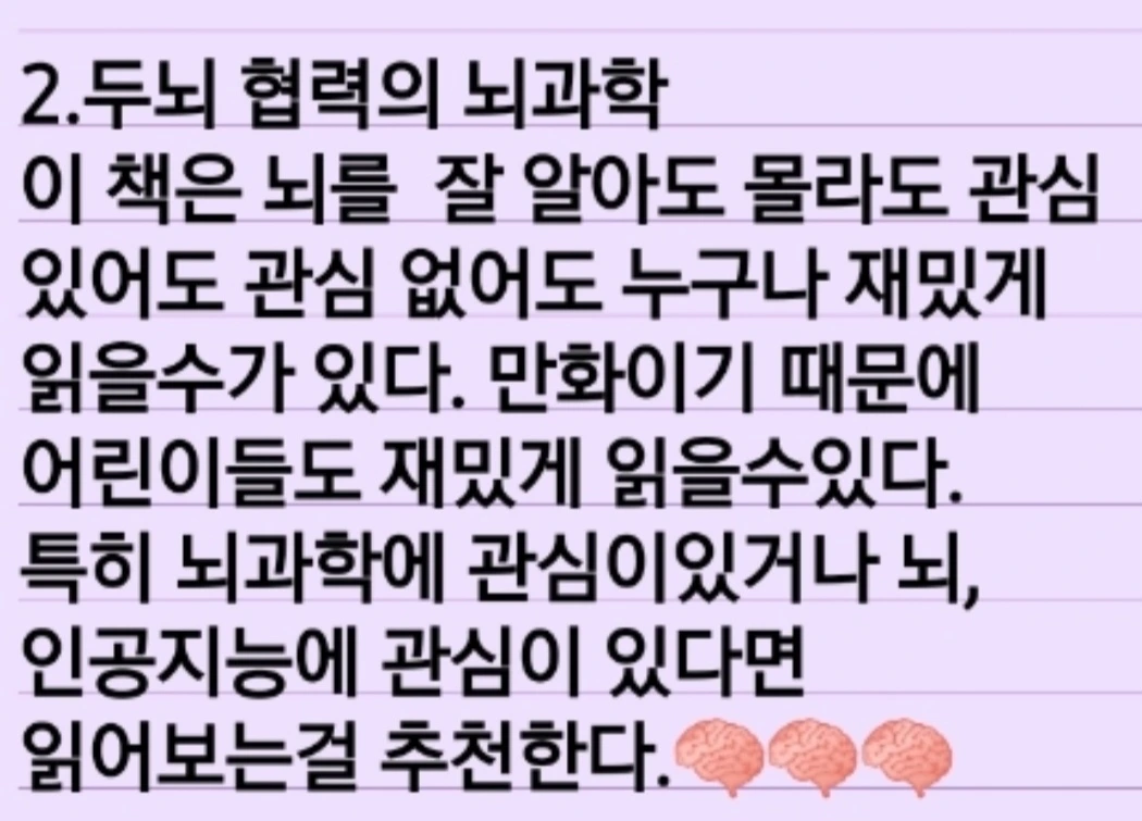 뇌과학자가 꿈이라서 뇌에 대한 책들을 많이 찾아보고 있어요. 도서관에서 찾아본 책들은 어른들이 읽는 어려운 책들이 많아요. 아직은 어려워서 읽기 힘든 경우가 많아요. 과학책방 갈다에서 구입해서 어렵지 않아 너무 재미있게 읽었어요.
