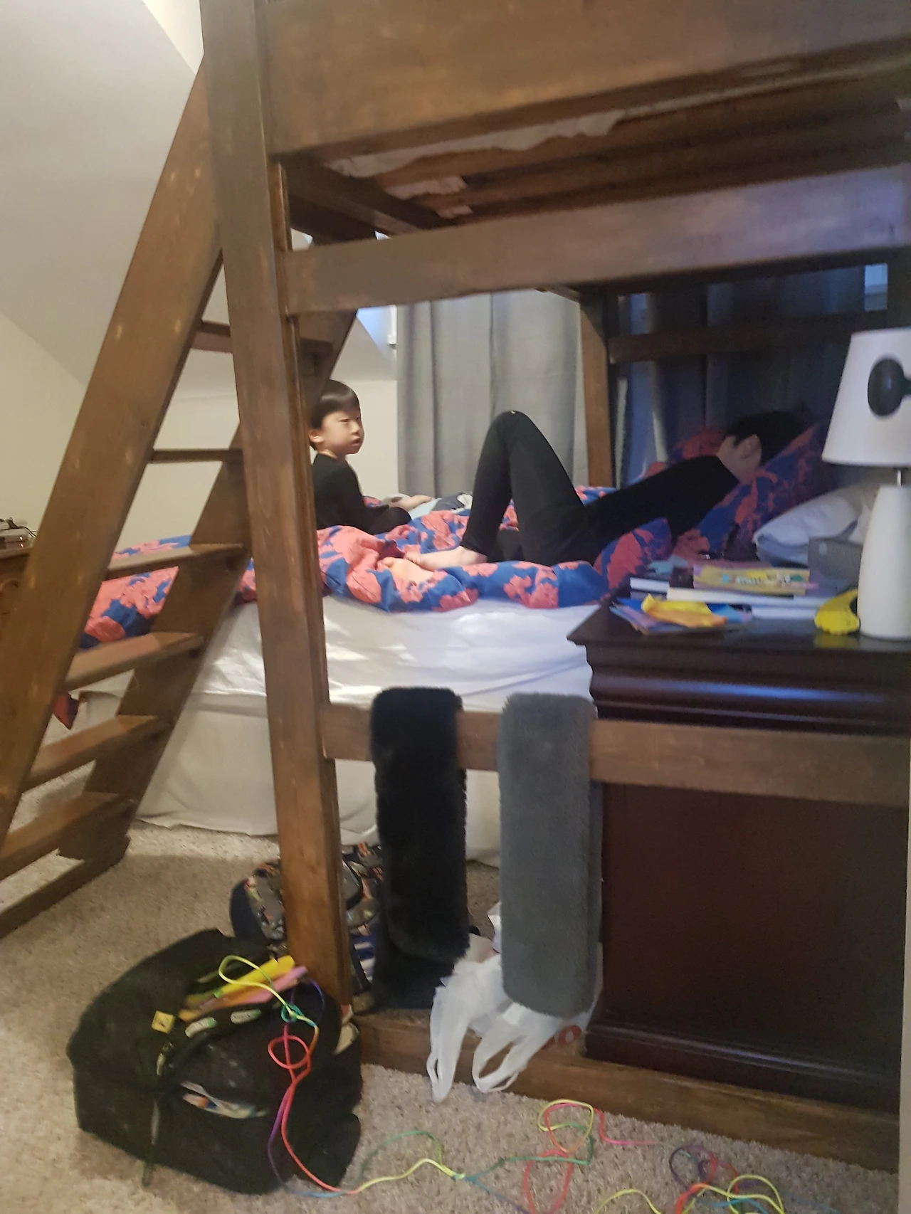 2층으로 올라가면 왼쪽에 큰 침대가 있는 침실이 하나 있고 오른쪽에는 화장실과 그 옆에 2층 침대가 놓여있는 방이 있었다. 2층 방들은 모두 한쪽 천장이 비스듬히 내려와 있어 조금만 주위를 기울이지 않으면 부딪히기 일쑤였다. 항상 위 아래가 뻥 뚫린 아파트 생활만 해서 인지 다락방 느낌의 천장은 항상 나에게만 공포의 대상이 되었다. 아이들은 키가 작아 머리를 부딪힐 일이 없기에..