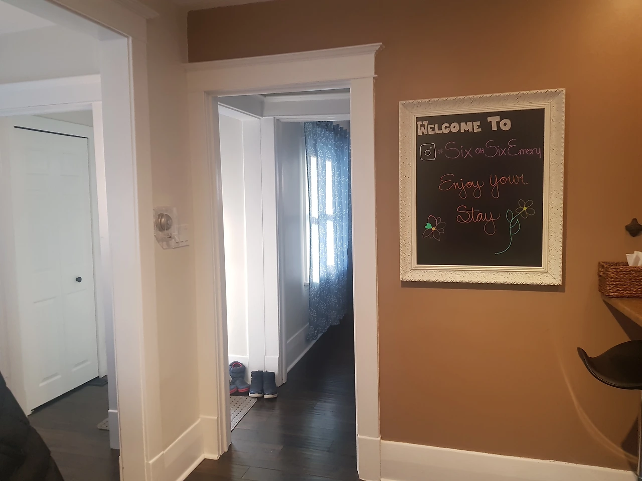현관을 열고 들어가면 바로 집 내부가 훤히 들여다 보였다. 신발을 밖에서 벗고 집안으로 들어가려는 애들을 보고 근처 마트를 갔을 때 신발을 벗을 수 있는 발판 매트도 하나 구입해 깔아놓고 사용했었다. 깔끔한 집이었지만 물티슈로 집안을 한번 닦아내고 아이들을 편하게 놀렸는데 우리가 지내는 중간에 주방 수도가 고장 나 주인이 고쳐주러 기술자와 함께 왔을 때 보니 캐나다인들도 집 밖에서 신발을 벗고 들어오는 걸 보고 놀랐다. 사실 집을 구할 때 이용규칙을 볼 때 캐나다 집들도 모두 신발을 벗고 들어가라고 규정되어 있었는데 실제로 보게 될 줄이야. 신발 신고 집을 돌아다니는 문화로 알고 있었는데 바뀌어 간다는 사실이 재밌었다.