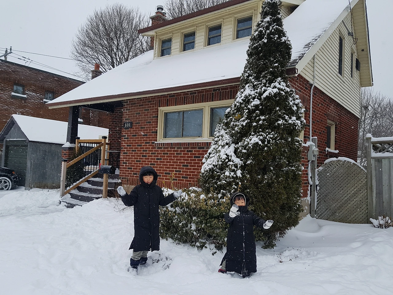 너무 ‘간절’ 했다. 잠시라도 소음으로 걱정하고 괴로워하는 생활을 벗어나고 싶었다. 외부의 소음으로부터 자유로울 수 있는 공간, 언제나 편안히 들어가 우리 가족들만 편하게 지낼 수 있는 집이 절실하게 필요했다. 한 달 동안 우리에게 좋은 추억을 만들어준 집은 외관부터 빨간 벽돌로 특이해서 처음에도 한눈에 알아볼 수 있었다. Airbnb에서 예약할 때 보던 사진 그대로였던 아담한 2층 집. 왕복 2차선 작은 도로를 가운데 두고 양쪽에 집들이 쭉 서 있는데 비슷한 듯 다른 집들을 보고 있으면 미드의 한 장면에 들어와 있는 기분이 들었다. 한 달 가까이 살았다고 우리가 지내던 집이 제일 예뻐 보인다. 대부분의 집들의 특징이 외벽은 벽돌로 내부는 나무로 되어 있었다. 집 앞에 쌓인 눈도 나무 한그루도 우리에게는 그저 즐거운 추억의 한 부분이 되어 주었다.