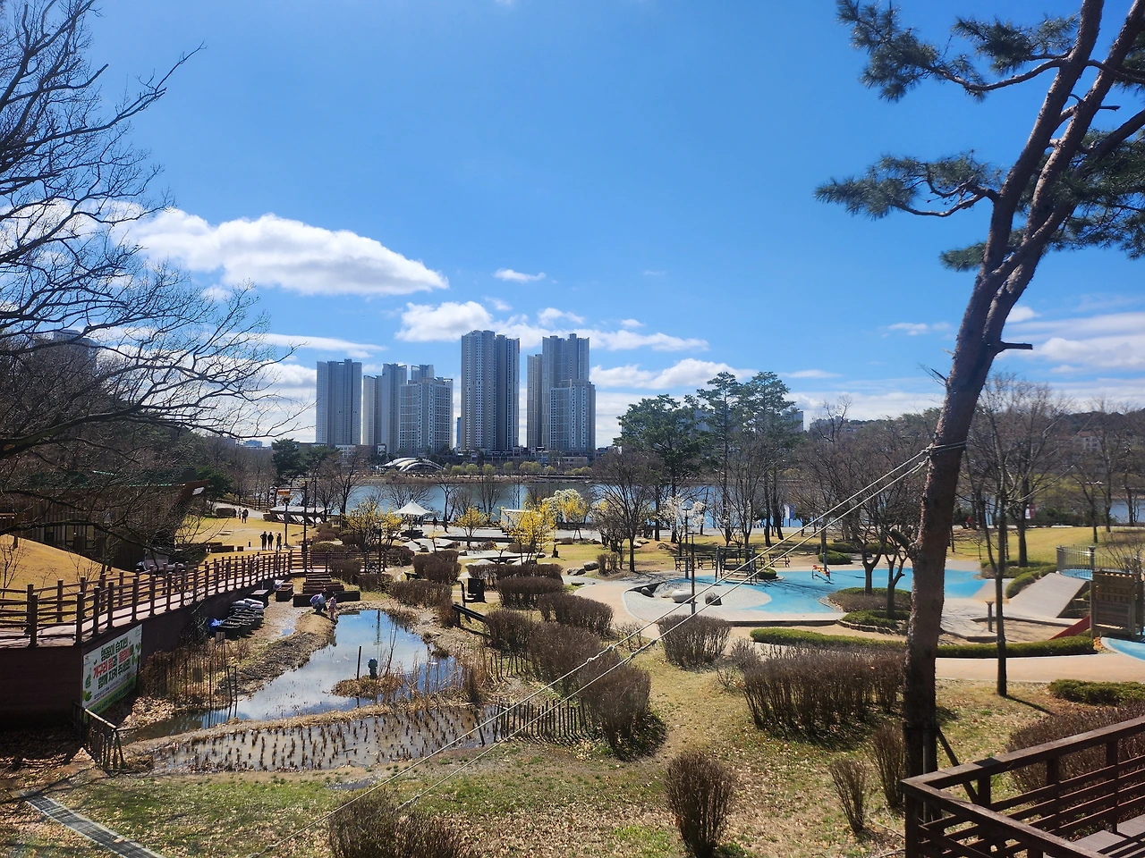 결혼 전, 서울에서 수지로 이사 온 친정집과 영통 신혼집 사이에 큰 호수와 놀이공원이 있었다. 한강에서만 보던 오리배를 탈 수 있었고 각종 놀이기구가 있던 곳이었다. 주변은 산과 논으로 둘러져있어 운치가 좋았던 그곳에 곧 아파트가 지어진다고 했다. 이 모든 풍경이 사라진다는 사실이 안타까웠지만 계획대로 대형 아파트가 들어서면서 호수 분위기는 달라졌다. 한적하던 공간이 신도시로 변해 아파트가 빽빽이 들어서고 지하철까지 개통되었다. 한동안 잊고 지내던 그곳에 분위기 좋고 예쁜 도서관이 지어지고 도서관과 호수 사이에 아이들이 놀 수 있는 공원도 생겼다. 도서관을 비롯한 주변 환경에 반해 아이들과 책도 읽고 호수도 감상하며 즐거운 시간을 보내던 그곳에 이제 P 그녀와 함께 왔다.