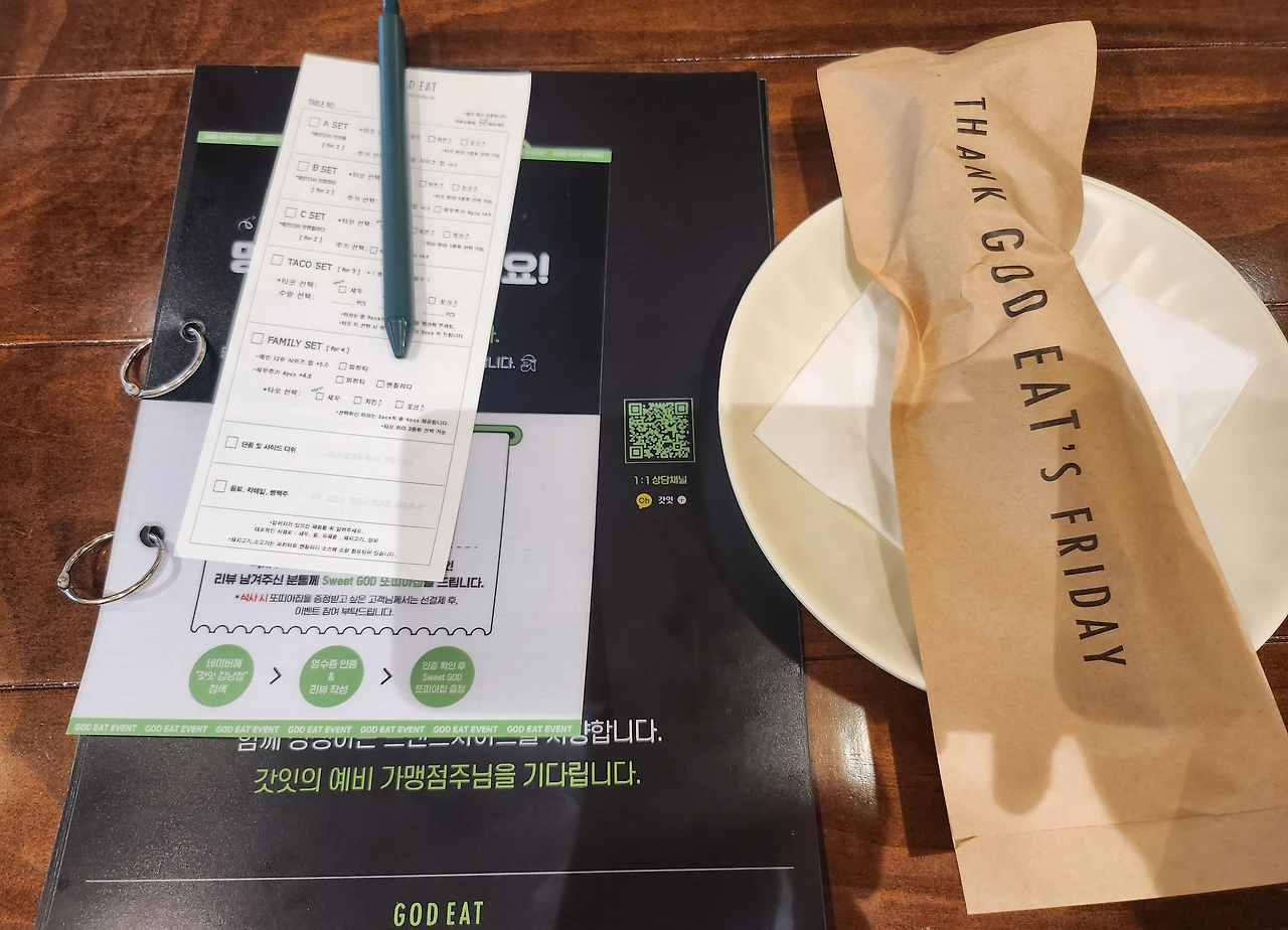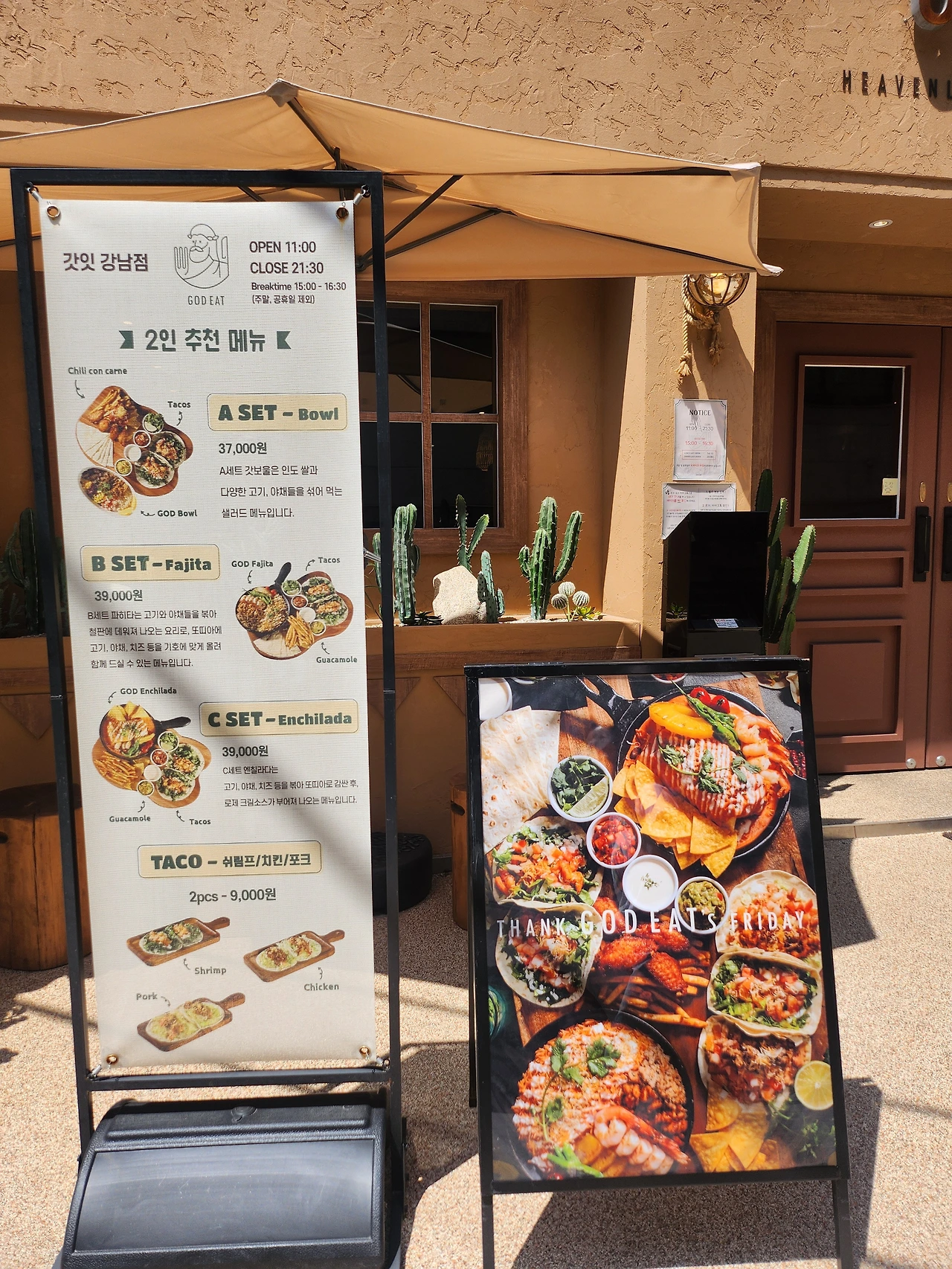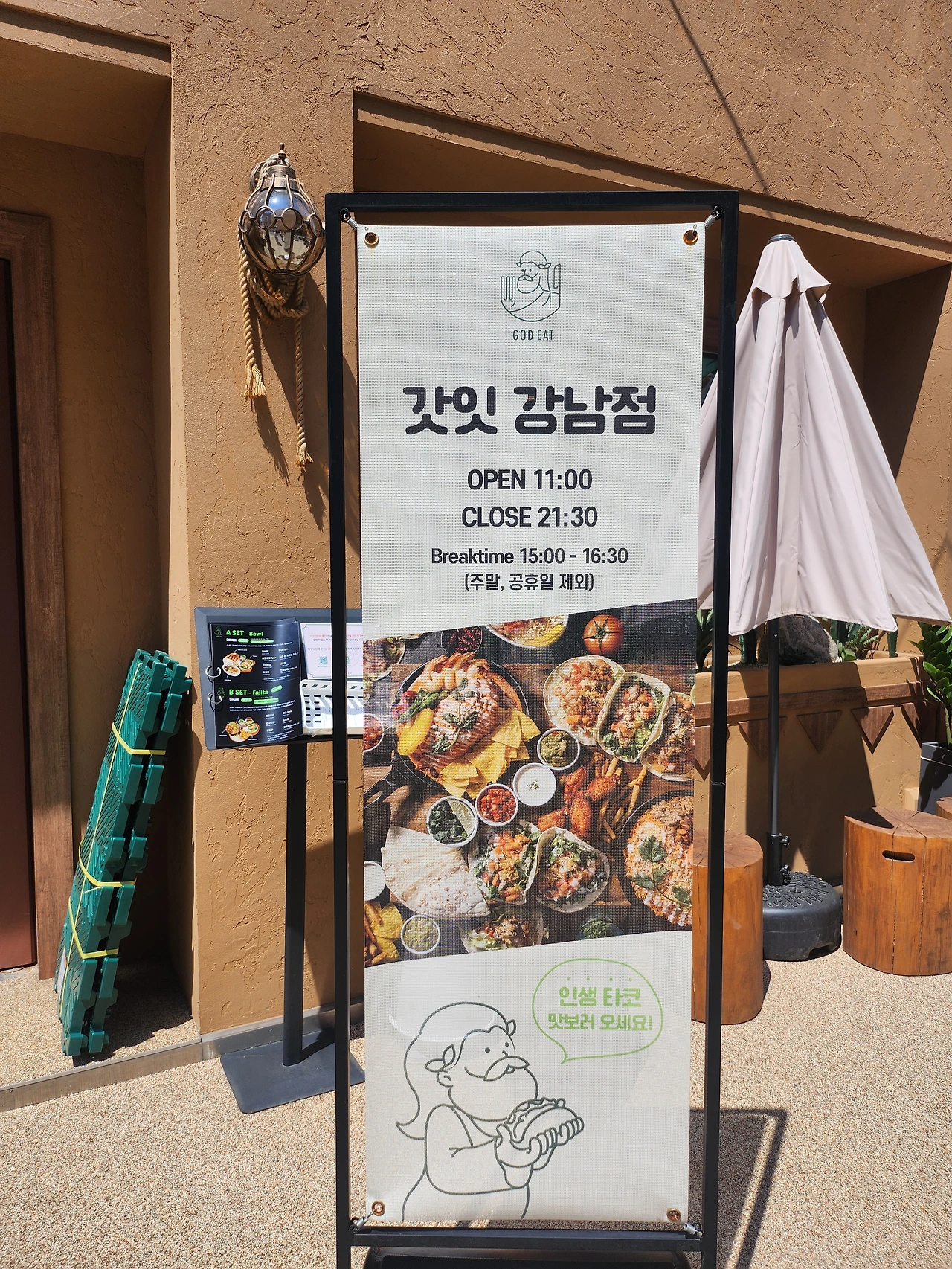 아이들 긴 겨울 방학이 끝나고 베프랑 함께 갔던 맛집. 워낙 유명해서 대기가 길다는 소문은 익히 들었기에 평일 오픈시간을 노렸다. 지난번에도 친구와 오픈 전에 가서 기다렸는데 2분 전에 물어보니 들어오라고 하셨던 친절한 그곳에 다시 조우한 소중한 이와 함께 방문했다. 나를 도와주려 일부러 시간을 내고 아침부터 도움을 주었기에 같이 맛있는 음식을 먹고 싶었는데 '강남 + 직장인들 많은 곳'이다 보니 음식점 보다 술집이 많기도 하고 가격대가 조금 있는 편이다. 가격보다 맛과 양에 감동한 곳이라 다시 가보고 싶었는데 드디어 기회를 만난 것. 매번 먹던 한식, 중식, 양식, 일식, 패스트푸드에서 벗어난 멕시칸 음식을 맛보러 갔다. 우리가 도착한 시간이 딱! 오픈 시간인데 벌써 한 테이블에 손님이 와있어 놀랐다. 역시 인기 있는 곳은 틀리는구나. 젊은 친구들이 많이 온다는 핫 플레이스'갓 잇'을 다시 찾았다.