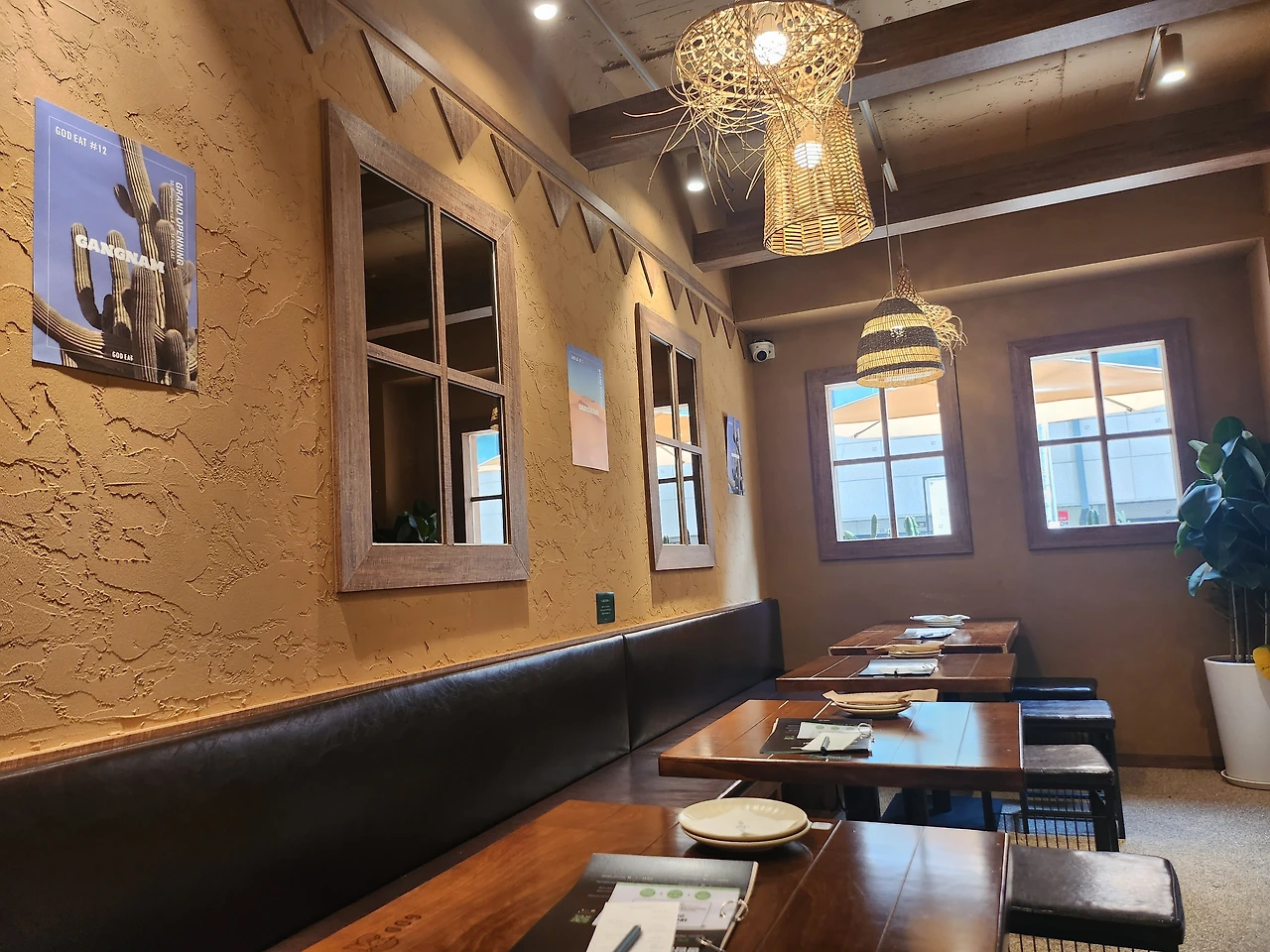 문을 열고 들어가면 바로 보이는 이색적인 입구. 막혀 있는 듯 보였으나 뒤로 펼쳐진 넓고 많은 테이블이 있어 깜짝 놀랐다. 전반적인 인테리어가 마치 남미나 멕시코로 여행을 떠나온 듯한 기분이 느껴진다. 또 이렇게 여행에 대한 욕심이 마구 뛰쳐나오려고 하면서 흥분되는 마음을 꾹꾹 눌러가며 매장을 둘러보고 자리를 잡고 앉아 두리번거리며 매장을 구경하고 작은 소품들을 보며 세세함에 감탄이 터져 나온다.