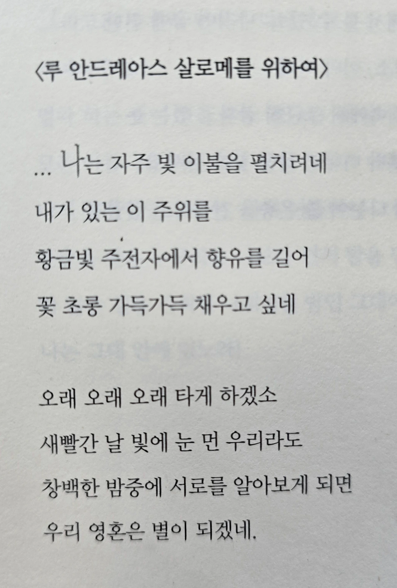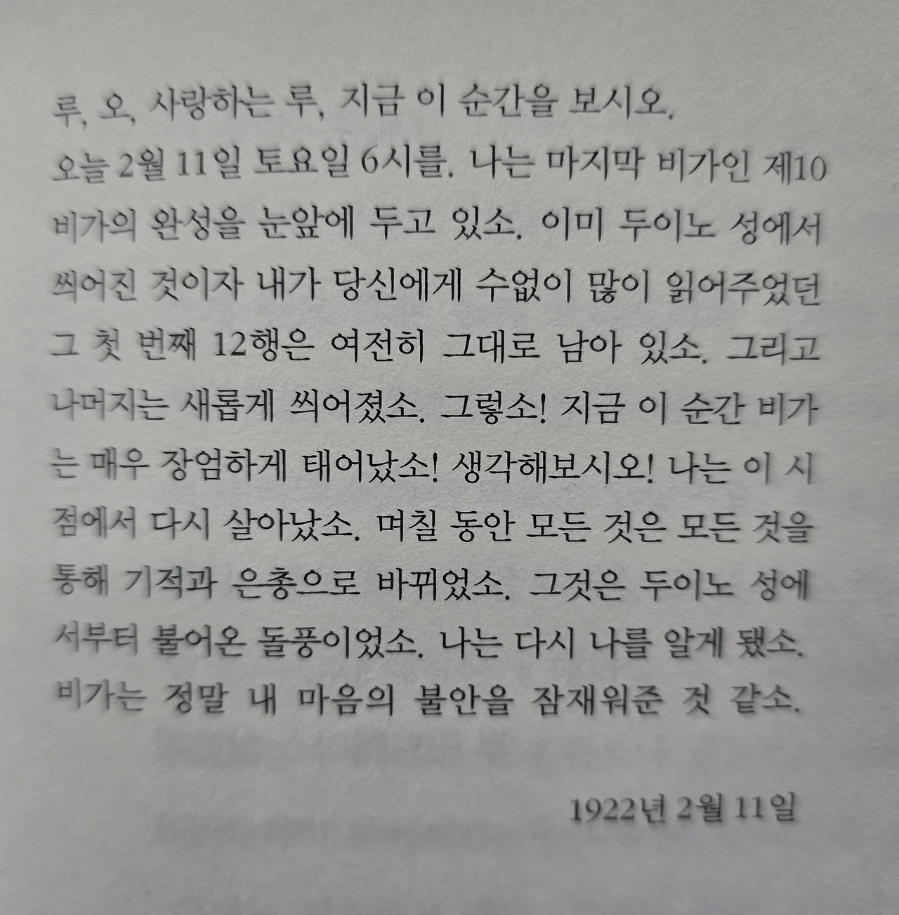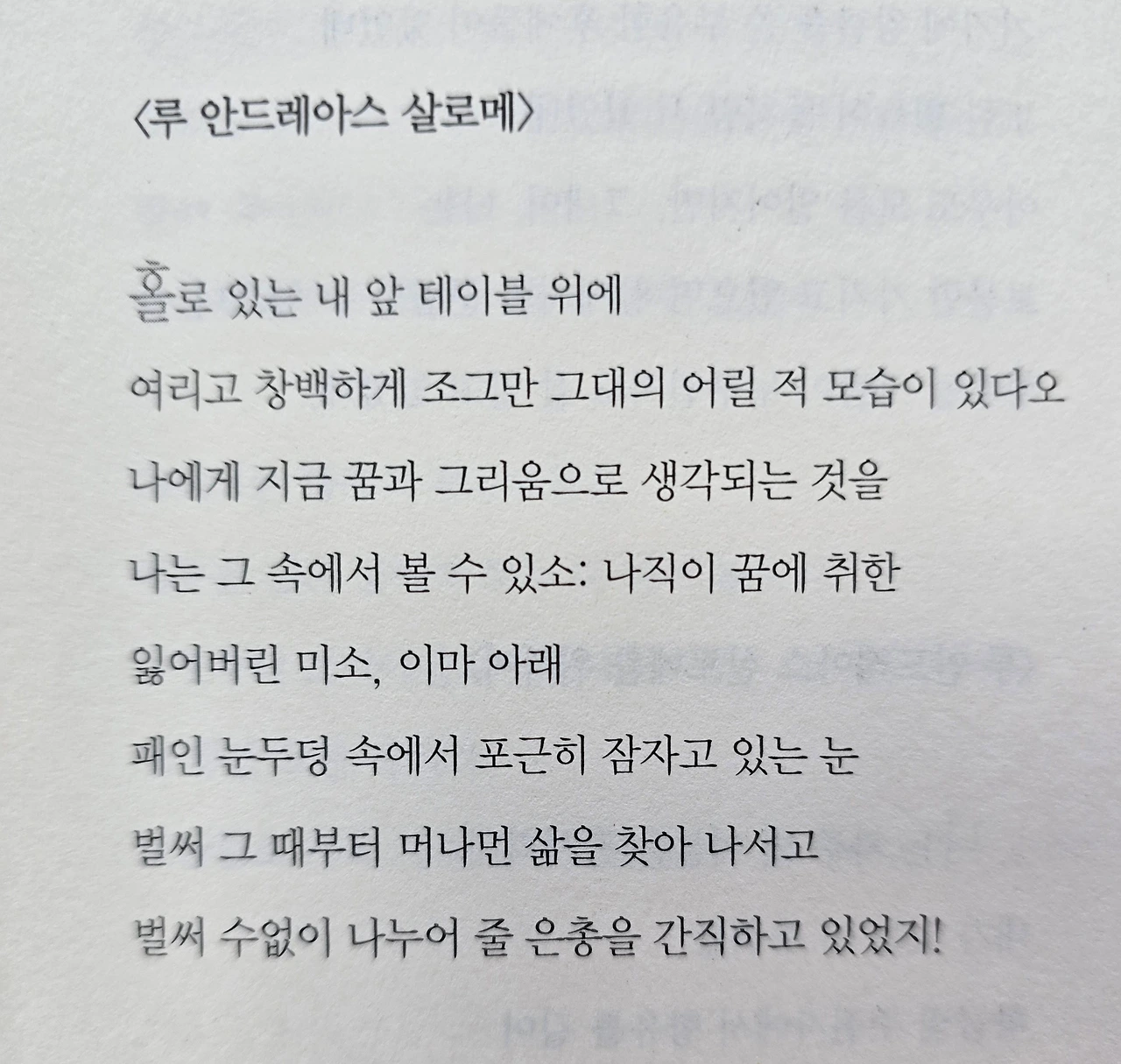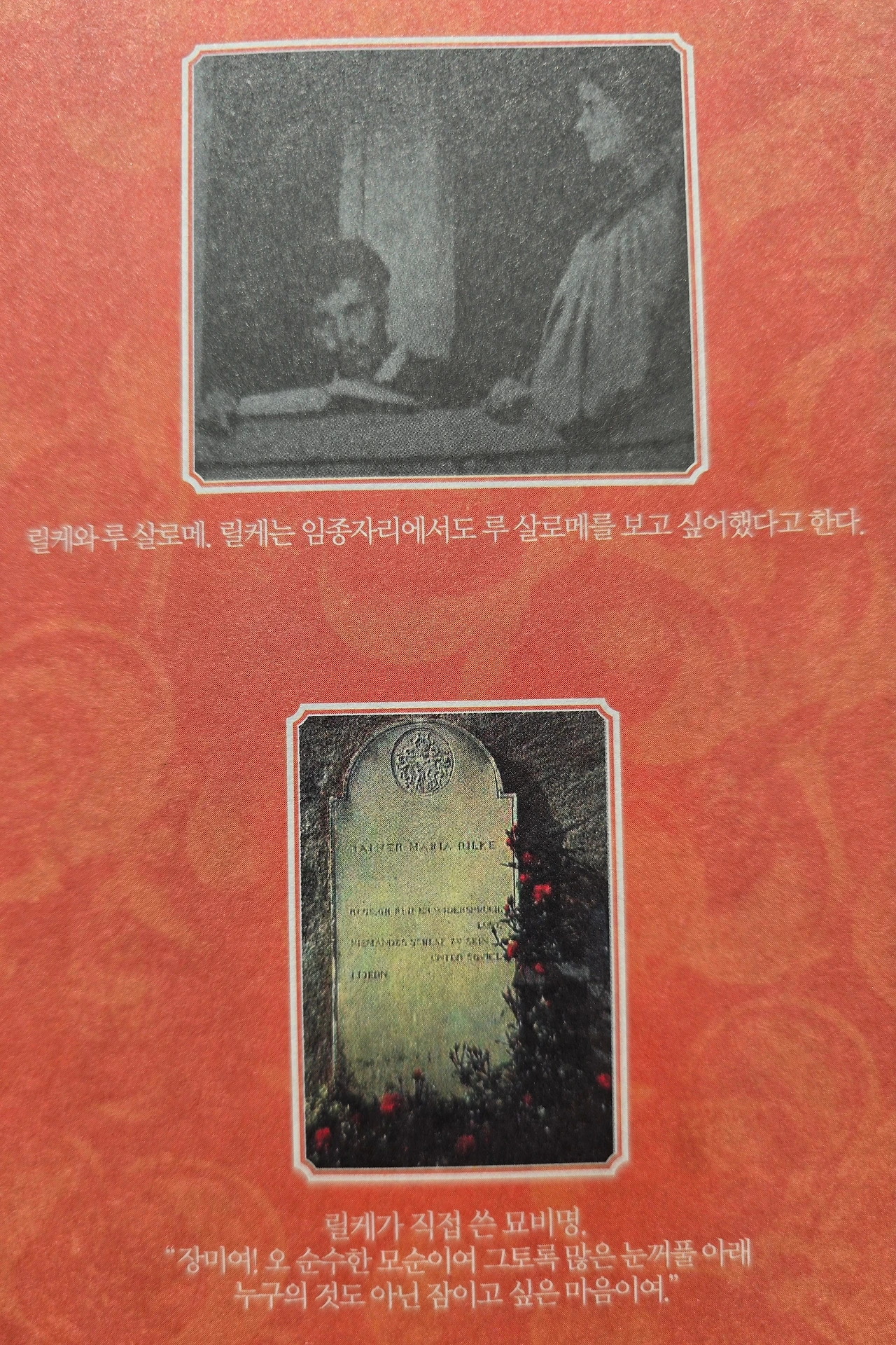 여리고 감수성이 풍부한 릴케는 생의 마지막도 시인처럼 드라마틱했어요. 놀러 온 여자친구를 위해 장미를 꺾다 가시에 찔린 이후 추운 겨울 생을 마감했다고 합니다. 시인은 슬픈 스토리가 많아야 시를 많이 써낼 수 있나 생각도 들기도 했어요. 사람의 인생이 굴곡이 없을 수는 없지만 릴케도 루 살로메도 특이한 생활의 연속이었고 그 가운데 다양한 작품도 꾸준히 써내는 모습들이 인상적이었요. 릴케가 루를 위한 사랑만 노래했다면 20세기 최고의 시인으로 손꼽히지는 못할 겁니다. 종교적인 색채가 드러나긴 하지만 다양한 주제로 수많은 시를 만들었던 독일의 대표 시인 중 한 명으로 섬세하게 표현하는 서정시를 써냈습니다.
