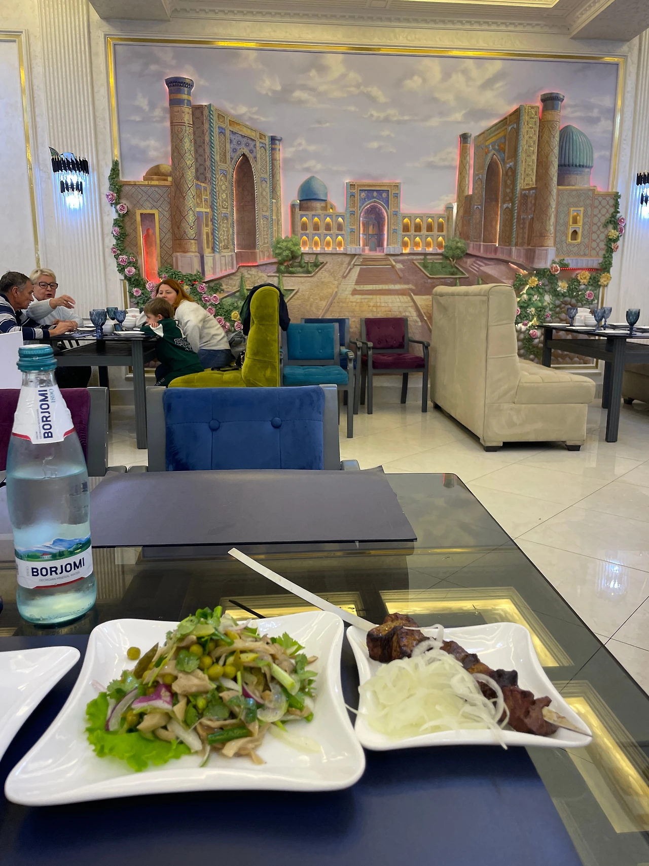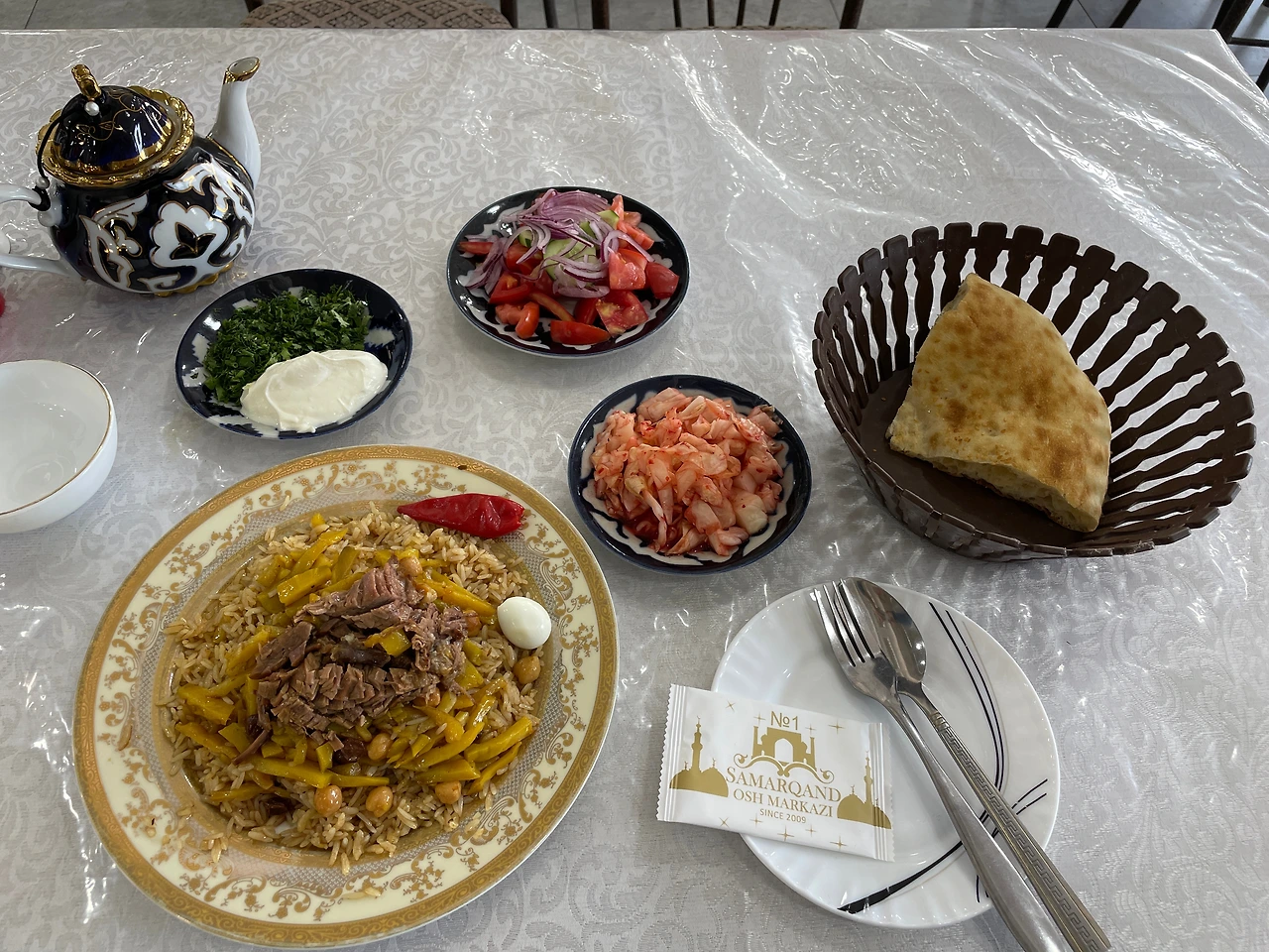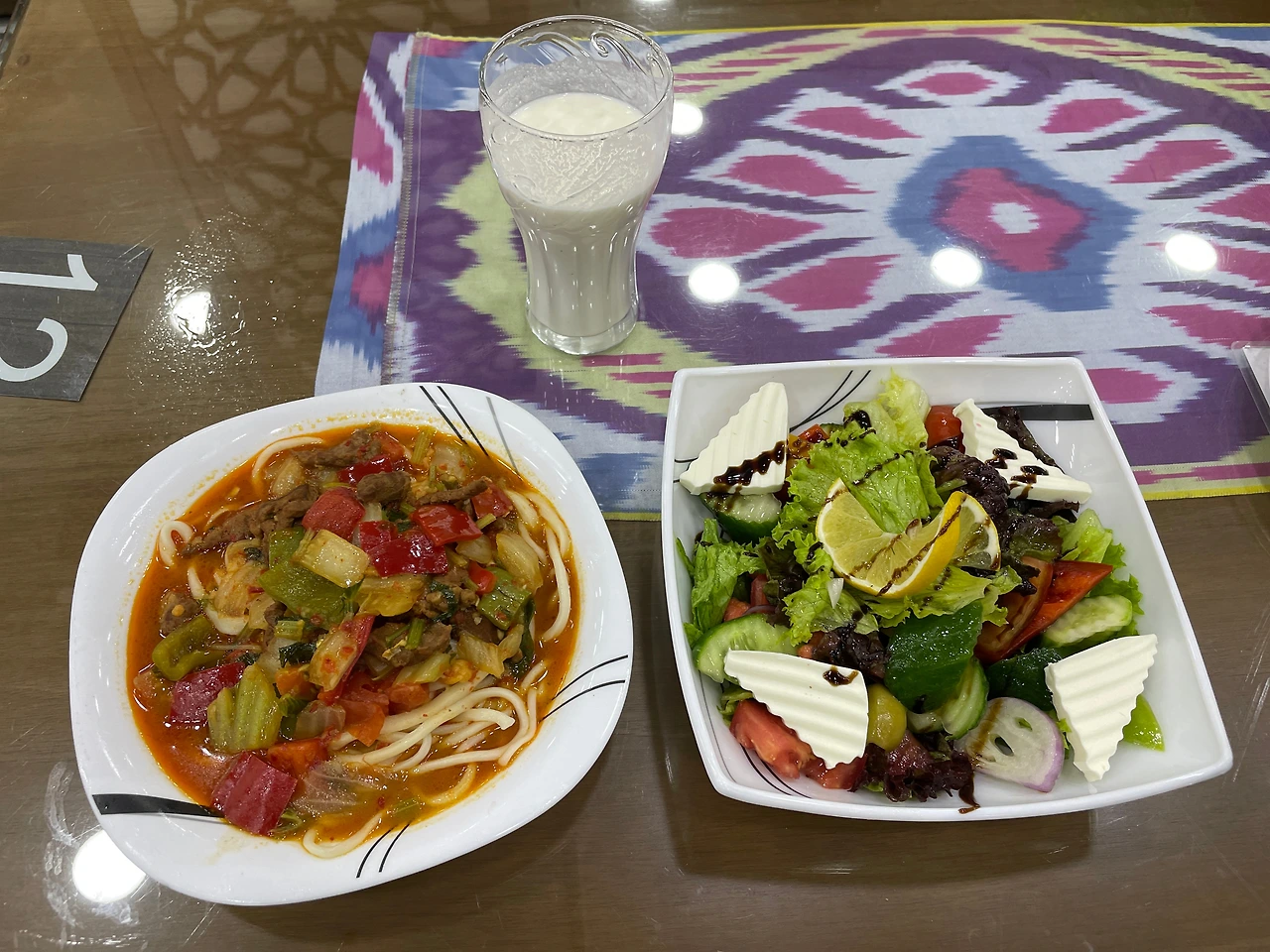 우즈베키스탄 여행을 추천하는 이유 3가지를 들자면, 바로 1. 맛있는 음식, 2. 저렴한 물가, 3. 한국인에게 우호적인 현지인이다. 우선 맛있는 음식부터. 우즈벡은 멜론과 무화과와 같은 과일이 달콤하기로 유명하고 넓은 벌판에서 건강하게 뛰놀며 자란 양&소고기가 유명하다. 갓 구운 화덕에서 나와 불의 향기를 머금고 있었던 쫄깃한 사마르칸트의 논(빵), 얼큰한 짬뽕 라면 라그만, 눈에 보일때마다 사 먹었던 석류 착즙 주스, 메뉴판 몇 장을 차지할 만큼 다양한 종류의 샐러드도 어찌나 맛있던지. 그중 가장 기억에 남는 건 ‘가지 샐러드’인데, 지금 내가 먹는 것이 가지인가, 탕수육인가? 가지에서 고기의 식감이 날 수 있다는 것을 알게 해준 환상적인 음식이었다. 식당을 통째로 한국에 옮겨와서 다른 음식들도 다 맛보고 싶었던 적도 여러 번, 조식부터 신선한 음식들을 가득 담아와 포식하다 보면 오후가 되어도 배가 고프지 않았지만, 그럼에도 새로운 음식을 맛보러 기어코 식당에 들어갈 수밖에 없었다.