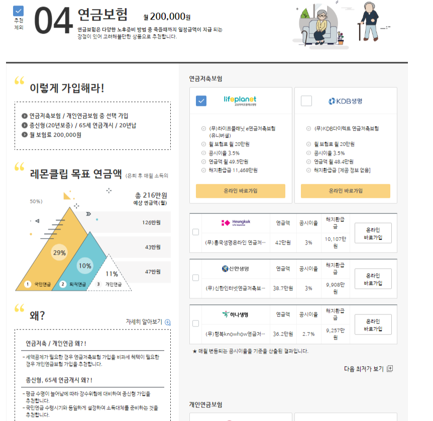 죽지 않을 위험이라는 건 노후 관리를 말하는 부분입니다. 사실 은퇴 이후 경제 생활에 대한 대비는 보험이 아니라 저축이나 투자 등 자산관리의 관점에서 접근해야 하는데요. 다만 생명보험에서 판매하는 연금은 내가 오래 살더라도 죽기 전까지는 계속 받을 수 있다는 장점이 있습니다. 증권사나 은행에서 판매하는 연금이 정해진 기간 동안만 금액을 받을 수 있는 것과 다른 부분이죠. 이것처럼 연금보험이 가진 장점이 하나가 있으니, 노후 관리 방법 중 하나로 고려해볼 수 있다는 게 명 대표님의 생각이었습니다.