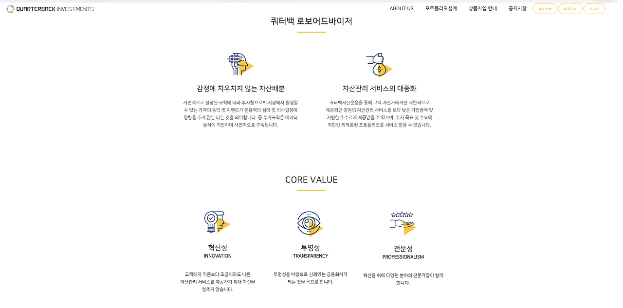 국내에서는 로보어드바이저가 등장한 후 IT, 인공지능, 알고리즘 등의 키워드가 함께 언급 되고 있는데요. 로보어드바이저의 핵심은 IT나 알고리즘에 있는 것이 아니라 어떤 구조적인 변화를 통해 고객에게 무슨 혜택을 제공할 수 있는 지에 있습니다. 이 내용이 로보어드바이저 회사의 철학이자 상품의 특징이 되어야 하는 것이죠. 단순한 투자 알고리즘 이상의 가치가 있는 겁니다.