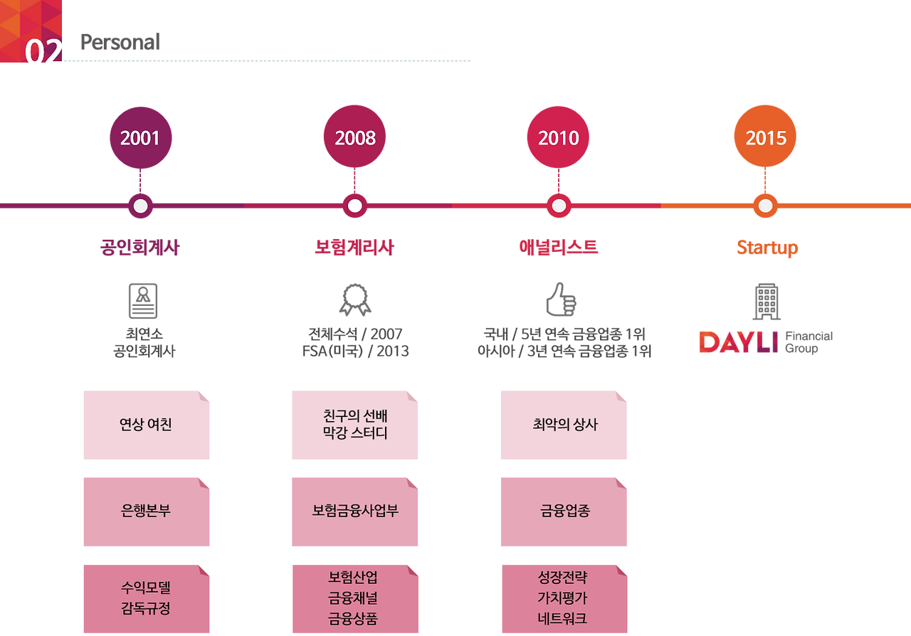 평범한 직장 생활을 하던 사람이었습니다. 2001년 회계사로 시작해, 계리사, 애널리스트라는 직업을 겪어왔죠. 이후 2015년, 지금의 데일리금융에 합류했고, 현재는 공동대표를 맡고 있습니다.