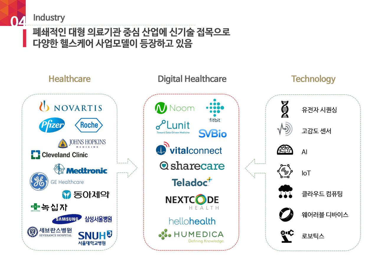 타 산업에 비해 매우 폐쇄적인 의료 시장에서도 변화는 일어나고 있습니다. 의료 산업은 전문성이 무척 중요해 정보의 단절이 심하고, 고객 중심의 서비스가 이뤄지기 어려웠는데요. 의료 및 관련 분야 기술의 발달로 보다 고객 중심의 새로운 서비스들이 활발하게 등장하고 있습니다. 특히 최근에는 의료 데이터와 관련된 분야가 주목 받고 있는데, 정보보호와 관련해 해결해야 할 과제들이 많이 존재하긴 하지만, 의료 분야의 빅데이터 분석 및 활용은 해당 산업에 아주 큰 변화를 일으킬 것으로 기대되고 있습니다.
