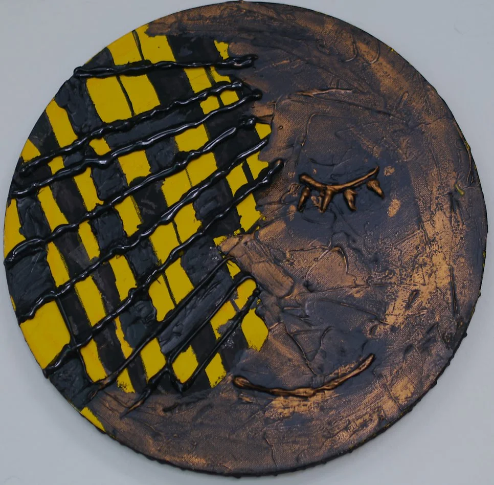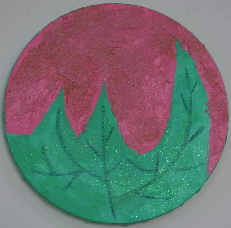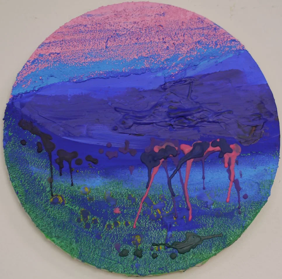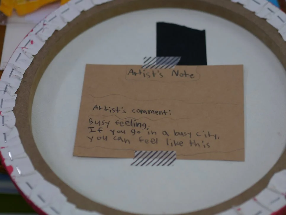 이 작품은 <무슨 일을 시작하기 전에 기대되는 기분>이다. 작가는 두근거리고 황홀한 느낌을 표현하고 싶다며 계속해서 'more and more'을 원했고, 다양한 재료를 사용하여 겹겹이 표현을 시도한 끝에 색깔 양초를 녹여서 흘러 내리도록 도와주었더니 오호, 꽤 흡족해 했다.