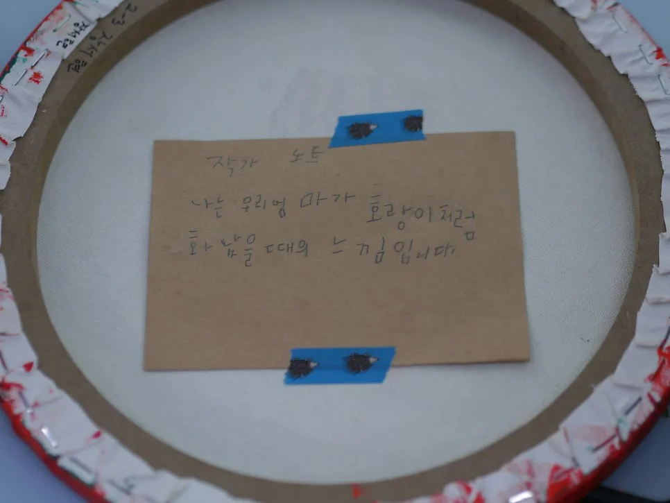 이 작품은 좀 웃음이 난다. 작가의 오빠는 야구 선수이다. 그래서 중간에 날고 있는 하얀 동그라미는 바로 야구공인데, 왼편이 본인의 분노 게이지이고 오른편은 오빠의 그보다 더 가득 차오른 분노 게이지란다. 오빠랑 엄청 자주 싸우기 때문에 이런 그림을 그렸다고 한다. 아무렴 사연을 듣고보니 그럴듯하게 표현했다.