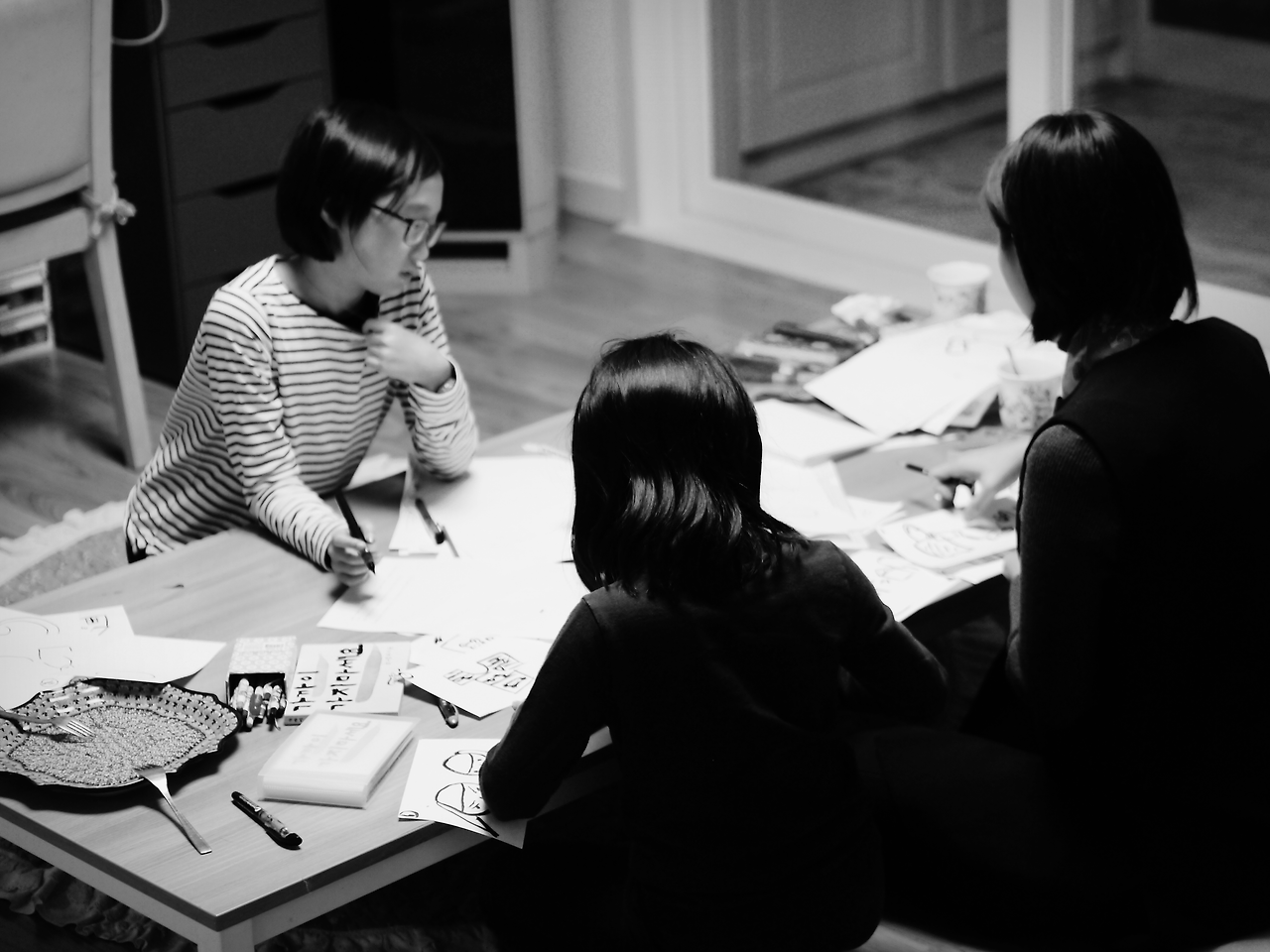 혜리언니와 마음 모았던 일들을 이렇게 하나씩 실현해 나가면서 [교실 속 그림책]이 가정의 거실 속으로 흘러들어가 그 의미를 확장하게 된 것은 가슴 벅찬 일이다. 아빠 엄마와 함께 웃고 먹고 떠드는 가운데 두 자매 작가와 함께 이 가정의 공간인 거실에 녹아들어 함께 이야기를 풀어나갔던 시간은 그 어떤 특강보다도 밀도있고 특별했던 수업으로 기억될 것이다.