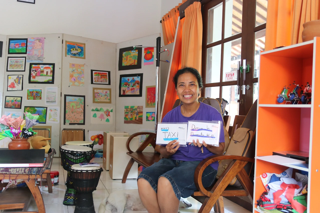 그리고 아유에게 먼저 아이들의 그림책을 보여드렸다. 여러 그림책들이 있었지만 페르마타 하티에 직접 왔다가 간 단이와 강이와 작업했던 그림책 두 권이 내게도 각별하여 이를 먼저 보여드렸다. 혜리언니가 같이 넣어준 사진을 보여드리니 아이들이 기억이 난다고 하시면서 무척 반가워하셨고, 단이가 쓴 'Dream in Permata Hati'를 한 장씩 넘기며 읽으셨다. 처음에 너무나 밝게 웃으시면서 책장을 넘기셨는데, 마지막 책장을 넘기면서 커다랗고 굵은 눈물 방울을 그야말로 뚝 뚝 흘리시며 너무 고맙다고 하셨다. 예상치 못했던 아유의 눈물이 내 마음에 촉촉하게 스며들었다. 아유와 마주앉아 그녀의 손을 따라 눈으로 맘으로 그림책을 함께 넘겼던 그 시간이 슬로 모션처럼 찬찬히 깊은 감동으로 기억되었다. 아이들과 수업했던 시간도 정말 행복했지만 아유와 그림책으로 마주했던 이 시간도 내게 너무나, 큰 행복이었다.