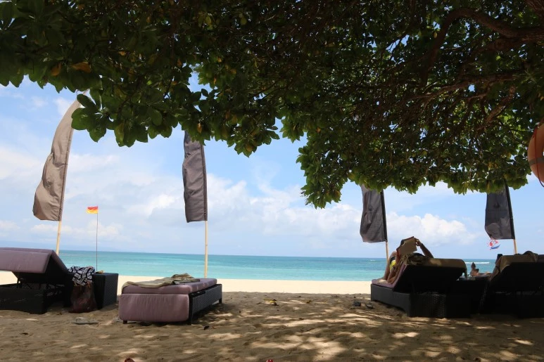 우리도 우리 리조트 area에 해당하는 카바나 중 하나에 자리를 배정받고 벌러덩 누웠다. 누워서 고개를 드니 커다란 아름드리 나무가 올려다보였다. 나무가 만들어주는 그늘이 너무도 시원했다. 지금 이 순간, 우리에게 Bintang이 빠질수 없지 않겠냐며 한잔씩 따라 짠 하고 다시 벌러덩 누웠다.