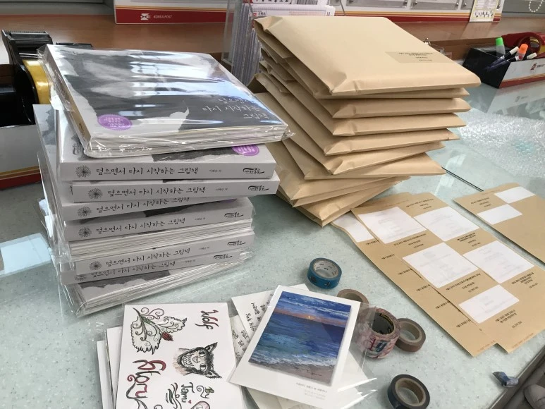 두근 두근 설레는 마음을 꾹꾹 눌러담아 한 권 한 권 소중히 보내드렸어요.