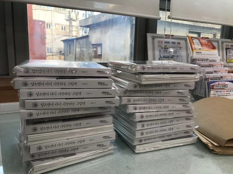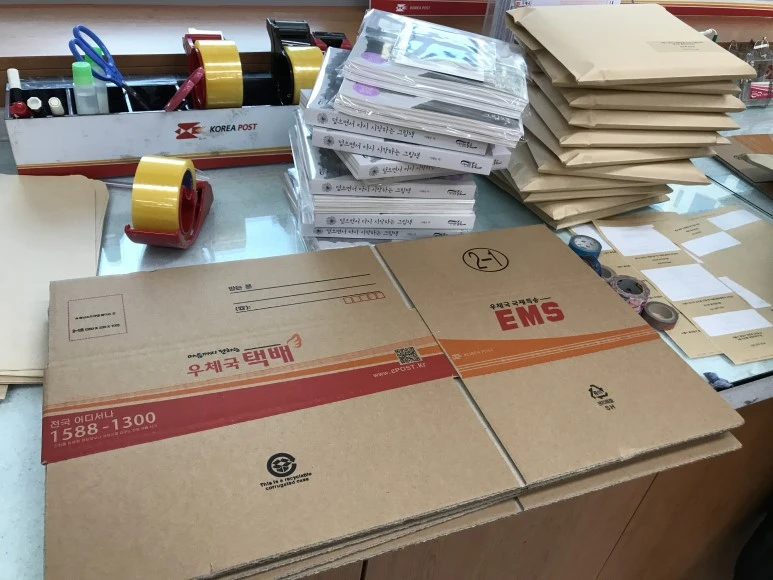 교육청 쪽에 출장을 갈 일이 있어서 그 근처 충정로 우체국에 들렀구요, 책을 혼자서 한번에 들 수 없어서 두 번 오르락 내리락했어요. 혹시나 책이 빗물에 눈길에 젖을까봐 비닐 포장도 했지요!