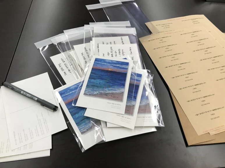 독자분들께 전하고 싶은 이야기가 있어서 한 분, 한 분 생각하면서 엽서도 썼어요.