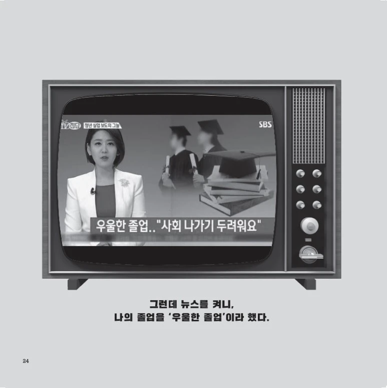“저렇게 우울한 졸업 하고 싶지 않으면, 너는 공부 열심히 해서 학사모도 우수한 것을 써야 한다. 열심히 안 하면 청년실업에 시달리고 결혼까지 포기하는 거 봤지? 너는 정신 똑바로 차려야 돼.”