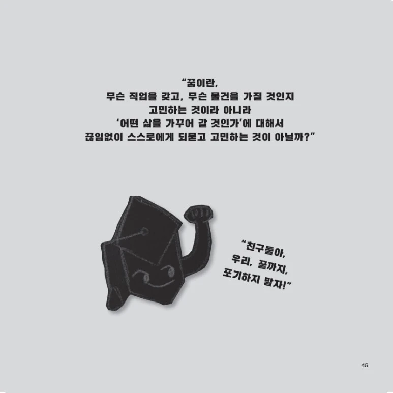 오늘 이 책을 펼친 당신은 이 질문에 대해 어떻게 답할 것인가. 꿈을 찾아가는 여정은 결코 열두 살 아이만의 문제가 아니다. 이 질문을 되묻고 고민하며 살아가야 하는 것은 오히려 오래전 학사모를 쓰고 졸업한 우리 어른이다. 당신은 어떻게 살기 위해 학사모를 썼는가. 혹 오래전 졸업과 함께 하늘 높이 날렸던 학사모가 그대로 허공에 멈추어 있지는 않은가. 당신의 학사모가 자신만의 날개를 달고 자신만의 창공을 마음껏 날고 있기를, 그리하여 진정 그것 외에 다른 것은 아무것도 원하지 않으며 살고 있기를, 부디 바란다.