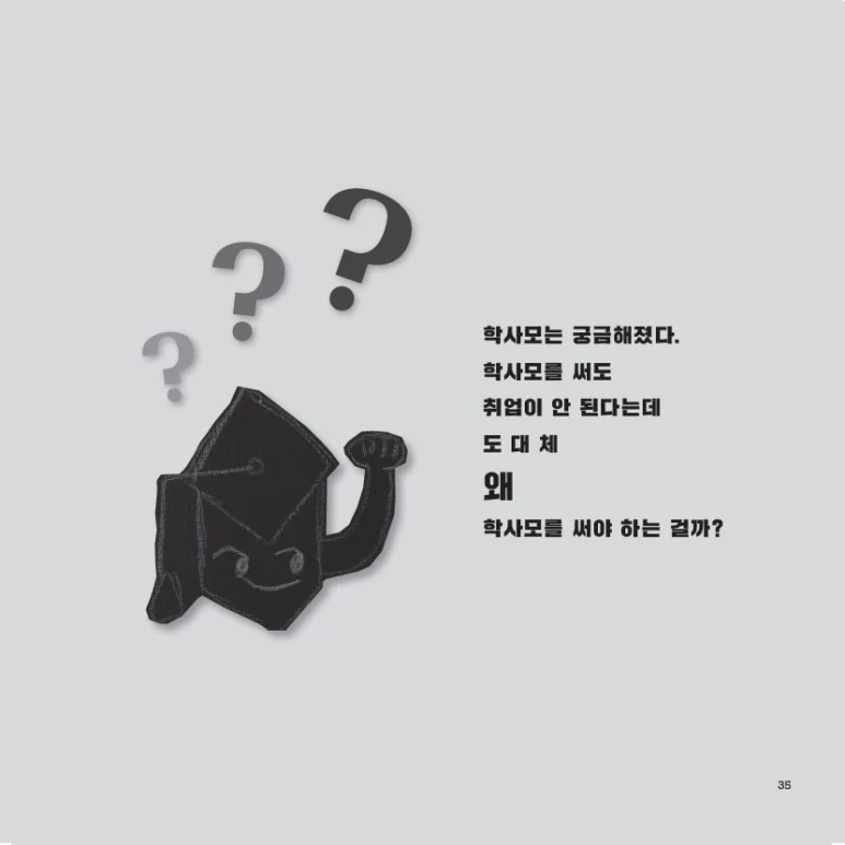 마지막으로 학사모는 묻는다. “꿈을 이룬다는 것이 무엇일까?” 이혜승은 이에 대해 꿈을 이루는 것은 좋은 성적과 대학 또는 많은 돈이 그 척도가 될 수 없으며, 더욱이 한 사람의 직업이 곧 그 사람의 꿈을 일컫는 지표는 아니라고 일침을 가한다. ‘무엇이 될까’를 정하기 전에 그 바탕이 되는 ‘어떻게 살까’에 대한 고민이 먼저인 것이다.