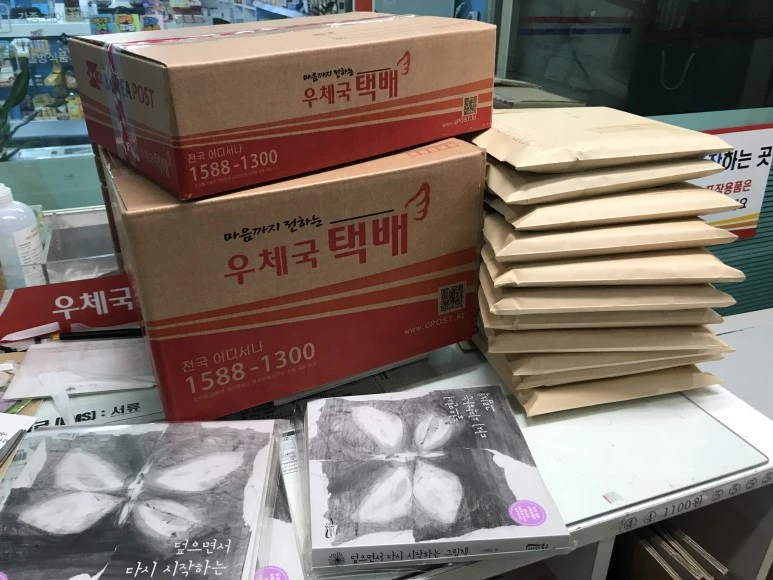 접수해주시는 분께서 이런 제 모습이 매우 안쓰러워(?) 보이셨는지 막 테이프도 같이 붙여주시고요... 찬찬히 챙겨주시고 "대단하세요 결국 다 잘 보내셨어요!" 하시면서 애틋한 미소를 지어주셨네요...ㅎ 모두다 잘 발송해드리고, 너무나 훈훈하게 감사인사 드리고 나왔답니다.