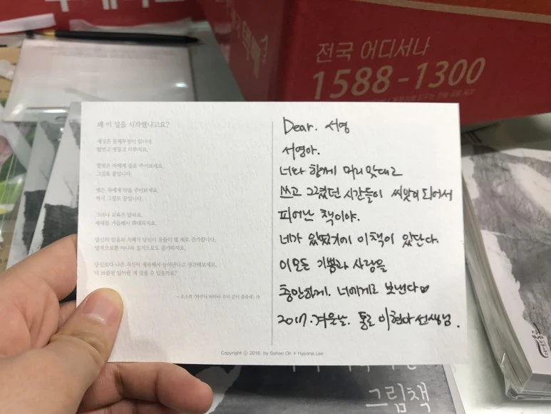 그리고 이번 2차 배송때는 [독립출판으로 어린이작가 그림책 만들어주기]의 첫 시작을 함께했던 어린이작가들에게도 이 책을 챙겨 보냈답니다.