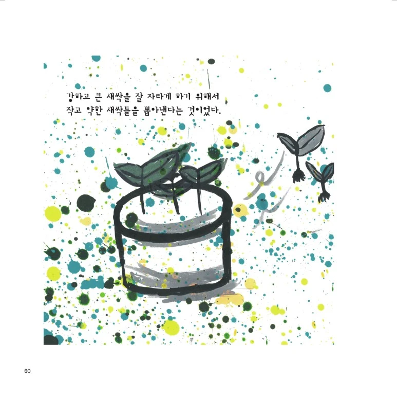 마지막으로 교사 독자인 손경아 선생님은 시선의 전환을 제안한다. 우리는 같은 사물을 동일한 방식으로 보지 않는다. 왜냐하면 우리 모두는 저마다 다른 정신적 배경을 가지고 있기 때문이다. 같은 새싹을 보면서도 솎아내기를 통해 경쟁과 낙오에 주목하는 아이가 있는가 하면, 선택과 비움에 대해 고찰하는 교사도 있다.