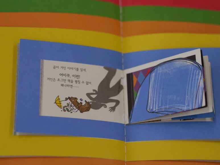 손이 너무 크거든! 그래서 친구들이 대신 책을 펼쳐 줘.