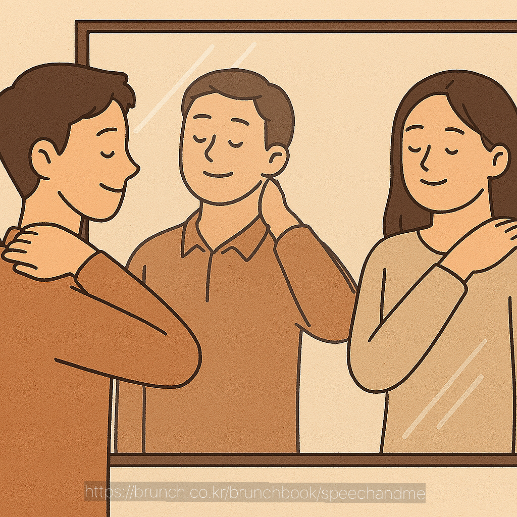 스피치를 배우러 온 수강생을 조용히 일으킨다. 거울 앞에 함께 서서, 어깨를 가볍게 털고, 턱을 풀고, 목빗근과 얼굴 근육을 부드럽게 이완시킨다. 말을 꺼내기 전, 나도 모르게 굳어 있던 신체가 조금씩 풀린다. 민망하지만, 거울을 보며 천천히 몸을 푼다. 그 순간, 몸이 조금 더 나를 허락하기 시작한다.