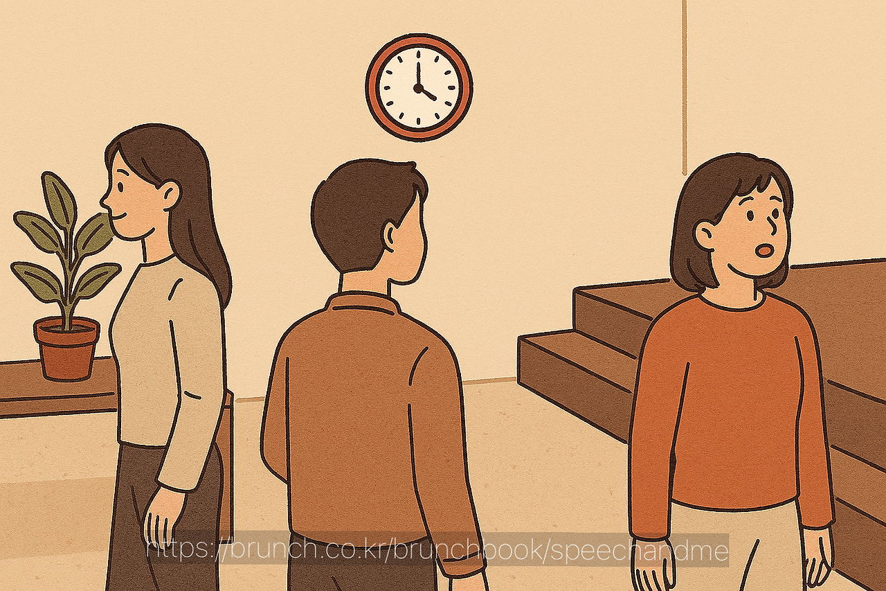 모든 말은, 말하기 전 호흡과 시선이 먼저예요. 숨 쉬고, 다시 말해볼까요?"