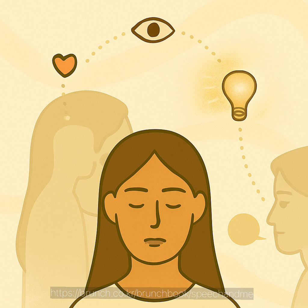 말을 하지 않는다고 해서 대화가 끊긴 게 아니다. 우리는 말하지 않아도 눈빛으로, 호흡으로, 표정으로 충분히 많은 것을 전달할 수 있다. 그저 숨을 한 번 들이쉬고, 상대를 조용히 바라보는 것. 그 2~3초의 정적 속에서 상대는 내 말의 ‘다음’을 기대하며 기다린다.