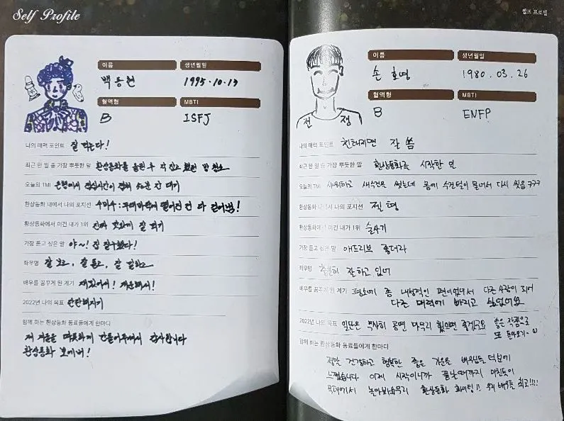 각 배우별 셀프 프로필이 있었다.