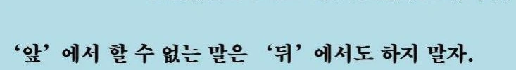 '앞'에서 할 수 없는 말은 '뒤'에서도 하지 말자.