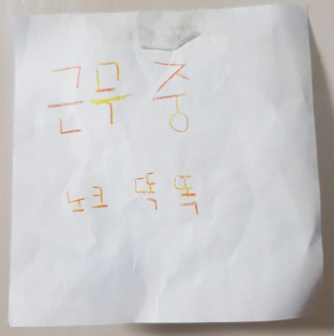첫 번째 재택근무가 시작되면서, 서재를 사무환경으로 바꿨다. 화상회의를 할 때 빨래 건조대를 보여줄 수는 없지 않은가? 그리고, 아이가 메모지 앞면에 '근무 중 노크 똑똑', 뒷면에 '와, 퇴근!'이라고 써서 문에 붙여두었다. 앞서 말한, 일과 일상생활이 뒤섞이는 것을 방지하기 위해 2주 차부터는 확실히 퇴근했다. 업무를 마치고 나면, 노트북 전원을 끄고, 출입문의 메모지를 '와, 퇴근!'으로 바꿨다. 그리곤, 주로 거실에서 휴식을 취했다.