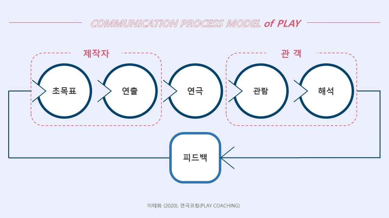 연극에서 관객과 소통하는 것도 결코 소통의 기본적인 원리에서 벗어나지 않는다. 커뮤니케이션 과정 모델을 연극에 적용하면 아래와 같이 표현할 수 있다. 연극은 제작자와 관객을 잇는 매체다. '관객과의 소통 기법'은 '연극'이라는 공연을 매개로 하여 관객과 소통하는 기법이다.