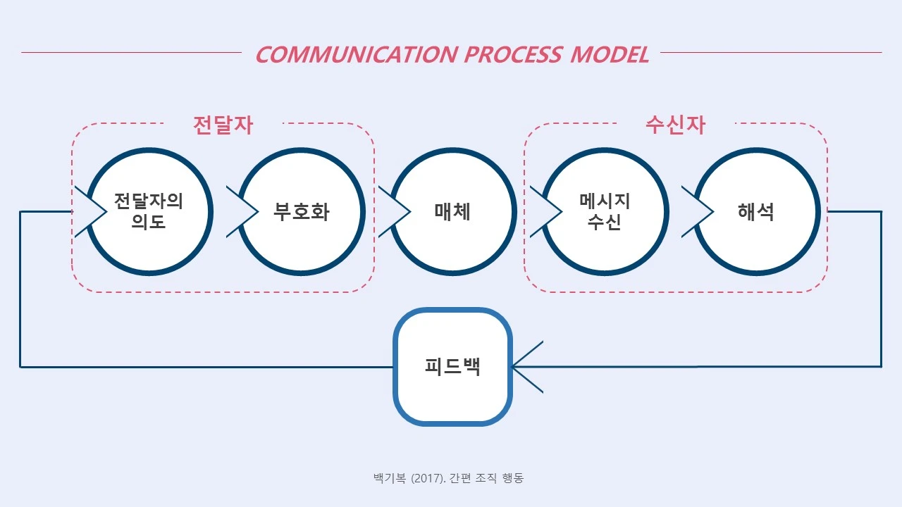 커뮤니케이션 모델로 설명할 수 있다. 가장 일반적으로 통용되고 있는 커뮤니케이션 과정 모델은 아래 그림과 같다.