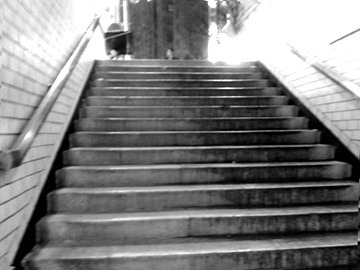 문득 계단을 올려다보니 오른쪽이 젖어있었다. 출구 밖에서 안으로 들어오는 사람들이 물로 색칠한 흔적이다. 우산을 접고 옷을 털고 빗물을 밟은 신발로 계단을 적셨다. 좌측통행을 하니 사진의 계단 오른쪽만 까맣다. 한쪽만 젖은 모습이 재미있어 사진을 찍었다. 제목은 '좌측통행'이라 붙였다. 요즘 비 오는 날 지하철역 출구 계단은 반대쪽이 젖는다.