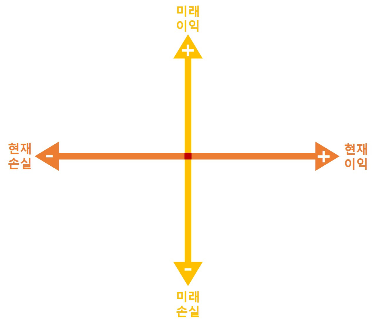 현재에 이익인지 손실인지 판단하는 것은 비교적 쉽습니다. 문제는 미래입니다. 미래에 이익이 될지 손실이 될지 어떻게 알 수 있을까요? 현재 시점에서 강력한 신념을 갖고 반드시 미래에 이익이 될 거라고 생각할 수는 있습니다. 그러나 많은 선택들이 시간이 지나서 후회를 낳는 게 현실입니다. 미래는 아무도 모릅니다. 그런데 미래에 이익이 될지 어떻게 판단할 수 있을까요? 당신은 어떻게 생각하나요?