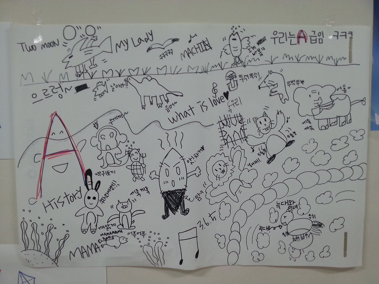 여러분 각 방의 결과물들을 보니까 어떠세요? 각 방의 느낌을 잘 표현한 것 같죠? 그림의 느낌도 참 많이 다르네요. 선생님이 느낀 것 중에 또 하나 재미있는 것은 작업을 하는 과정이에요. 여러분들이 함께 그림에 대해 상의하는 모습, 대화하는 스타일, 그리는 방법 등도 참 많이 달랐어요. 여러분도 혹시 느꼈나요?