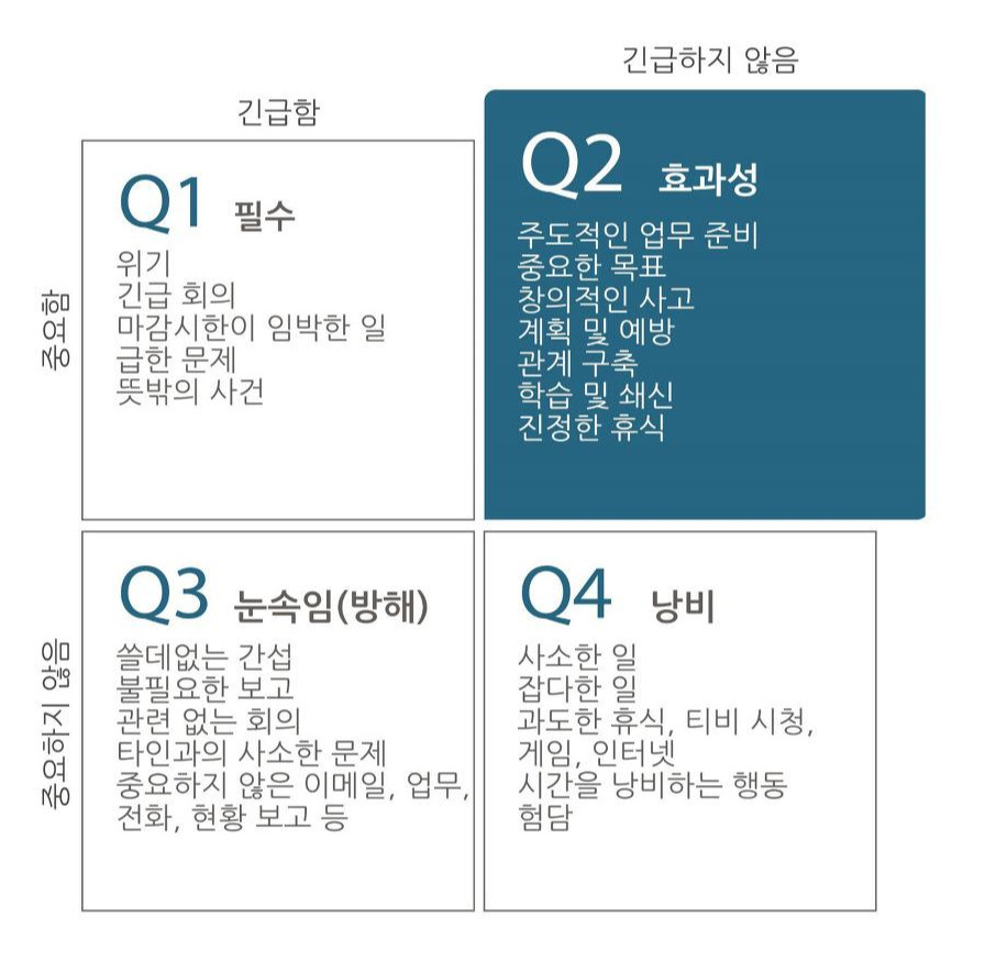 2사분면을 소홀히 함 -> 1사분면의 일이 늘어남 -> 4사분면으로 도피 -> 2사분면을 소홀히 함...