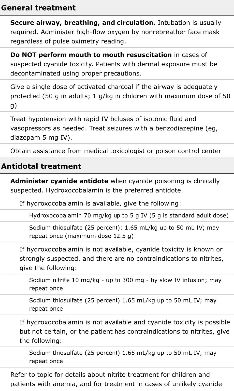 불 붙이면 푸른빛, 원형질의 독약, 끓는점 26도, 아몬드 향이 살짝, 몸을 마비시키고 호흡곤란을 유발, 피부로 흡수되면 발견되니 조심해.